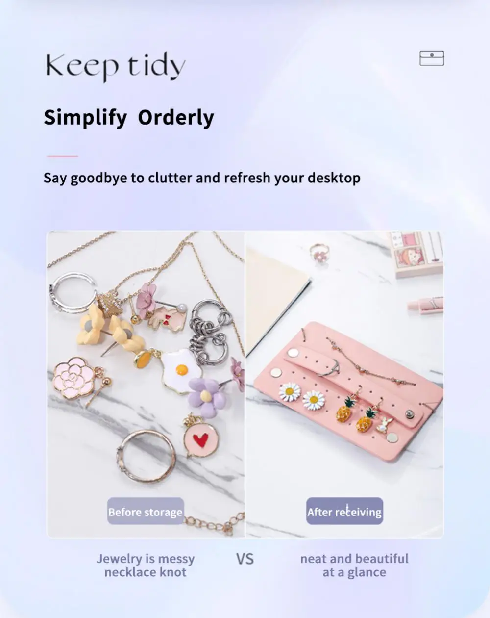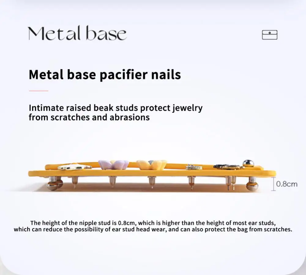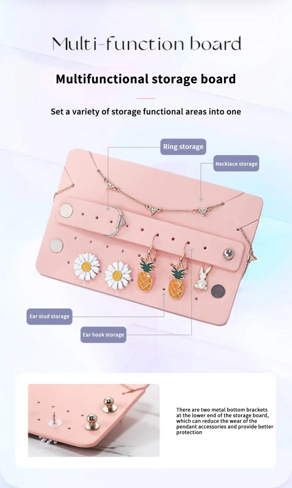 3.【Multifunctional storage】It integrates a variety of storage functional areas, including ear stud storage, ear hook storage, ring storage, and necklace storage.