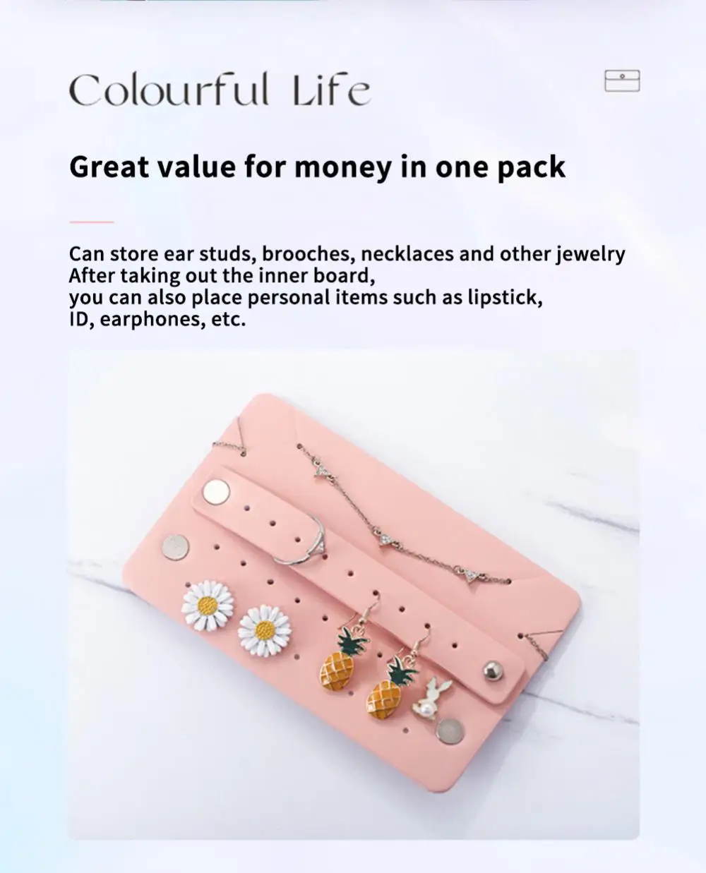 1.【One pack for dual purposes】 It can store ear studs, necklaces, brooches and other accessories; after removing the inner layer, you can put lipstick, documents, headphones and other personal items.