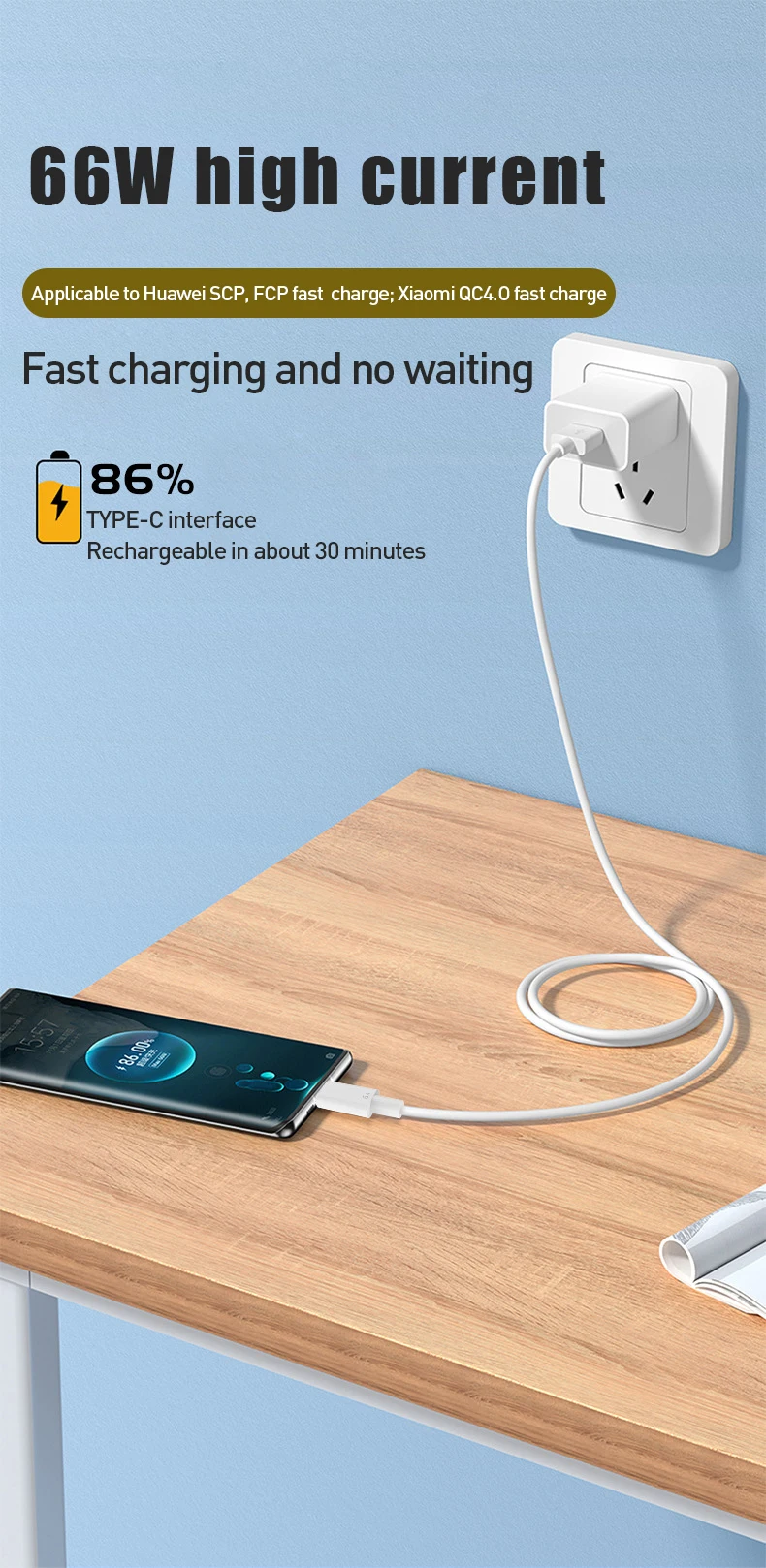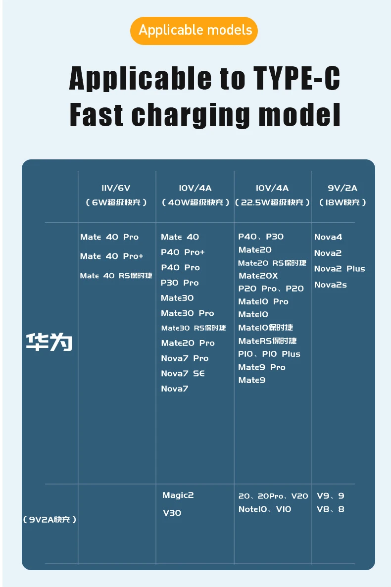 Match 11V6A (66W), 10V4A (40W), 5V4A (22.5W), 5V2.4A (12W), 5V2A (10W), 5V1A (5W) and other QC3.0/QC2.0 charging heads