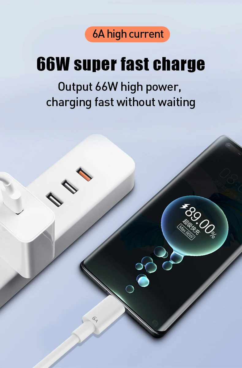 66W USB Type C Super-Fast Cable For Huawei Mate 40 50 Xiaomi 11 10 Pro OPPO R17 Fast Charging USB-C Charger Cable Data Cord