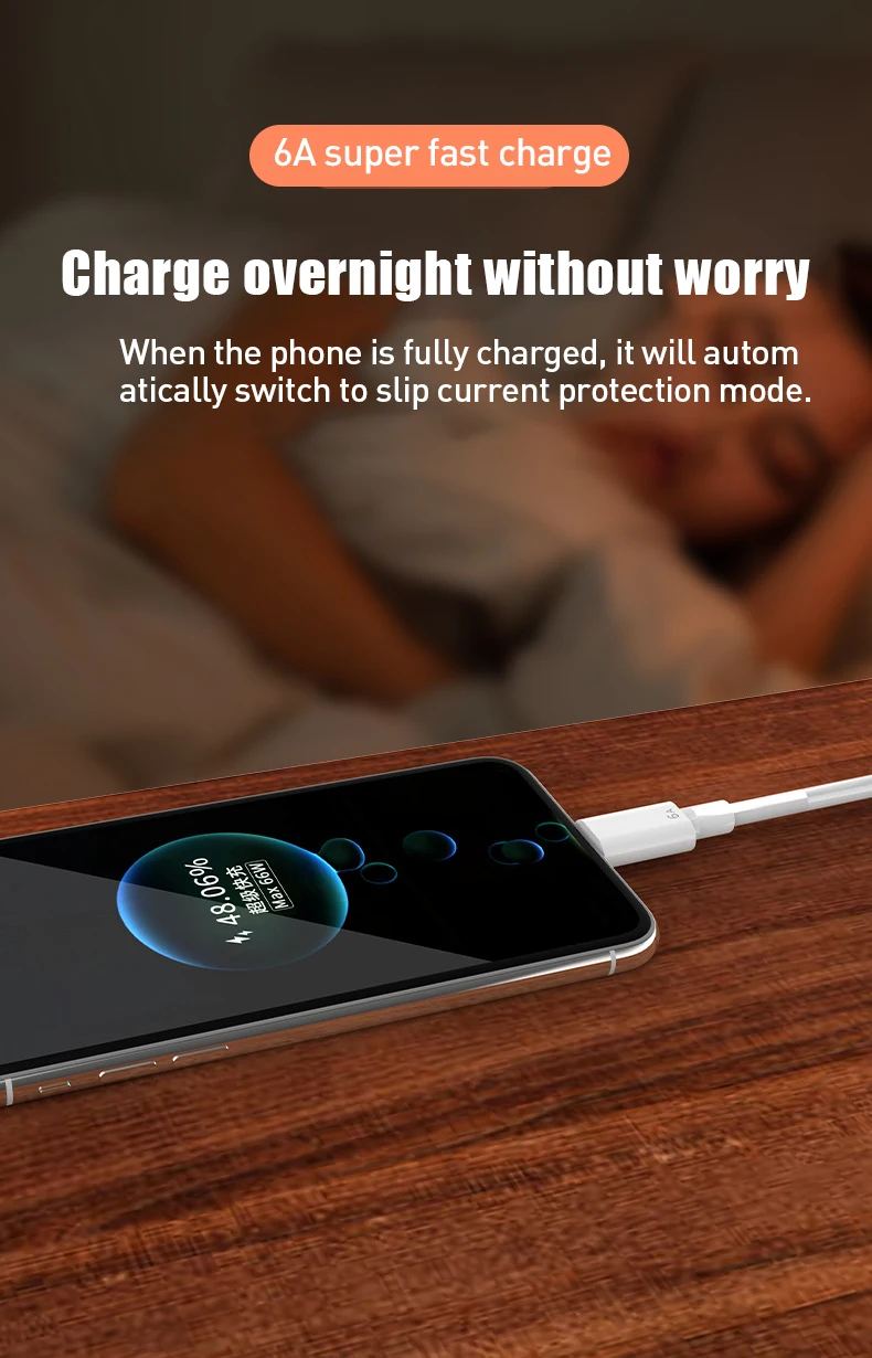 6A USB Type C Cable For Huawei P30 P40 Pro 66W Fast Charging Wire USB-C Charger Data Cord For Samsung S21 ultra S20 Poco