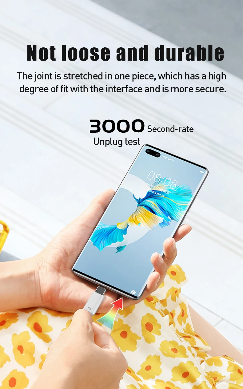 4. The 6A data cable uses orange pure copper terminals, the male plug A is a high-current insert, and the plug type-c is a stretched one-piece head