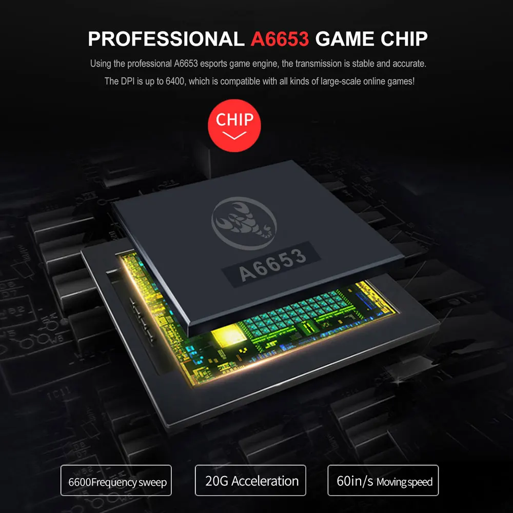 1. Full-key 9 customizable macro programming. 2. Six-speed variable speed adjustable DIP (800-1600-2400-3200-4800-6400). 3. game chip micro switch. 4. Integrated aluminum alloy sandblasted metal floor design. 5. Electroplated apron wheel 3D three-dimensional carving. 6.1680 million color backlight multiple mode changes. 7. Mechanical design, comfortable skin feel.