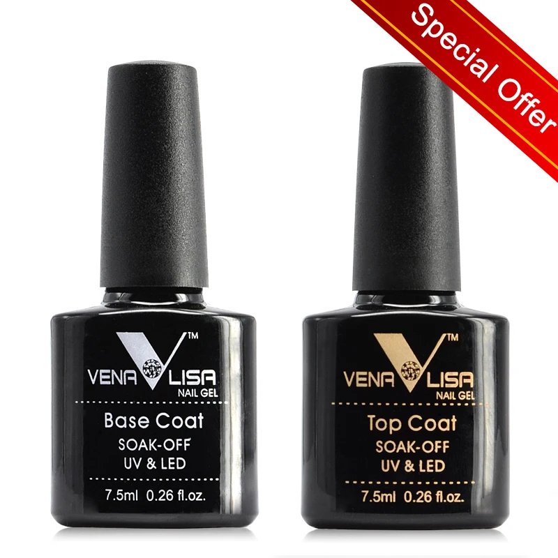 2pcs*7.5ml Venalisa Nude Color Gel Base Nowipe Top Coat Soak Off UV LED Gel Nail Polish Cosmetics Nail Art Manicure Nail Varnish