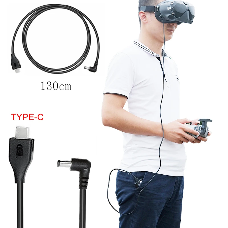 For DJI FPV COMBO Drone Flying Glasses V2 Charging Cable 130cm Extended Type-C Line Power Supply Connection Wire Accessories
