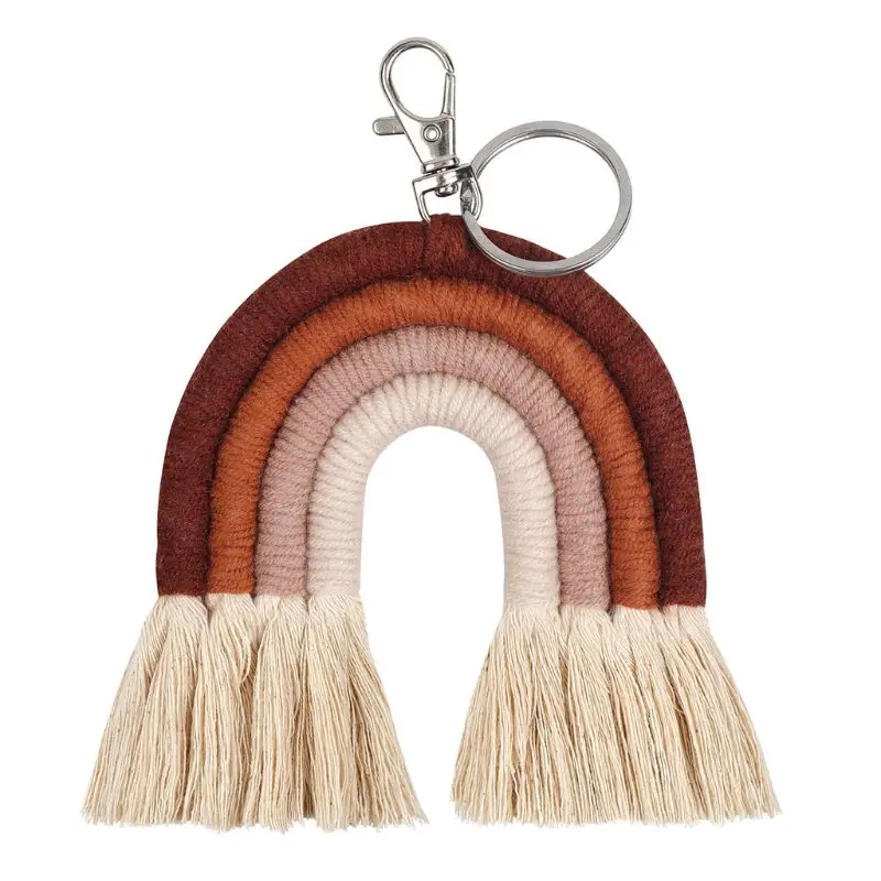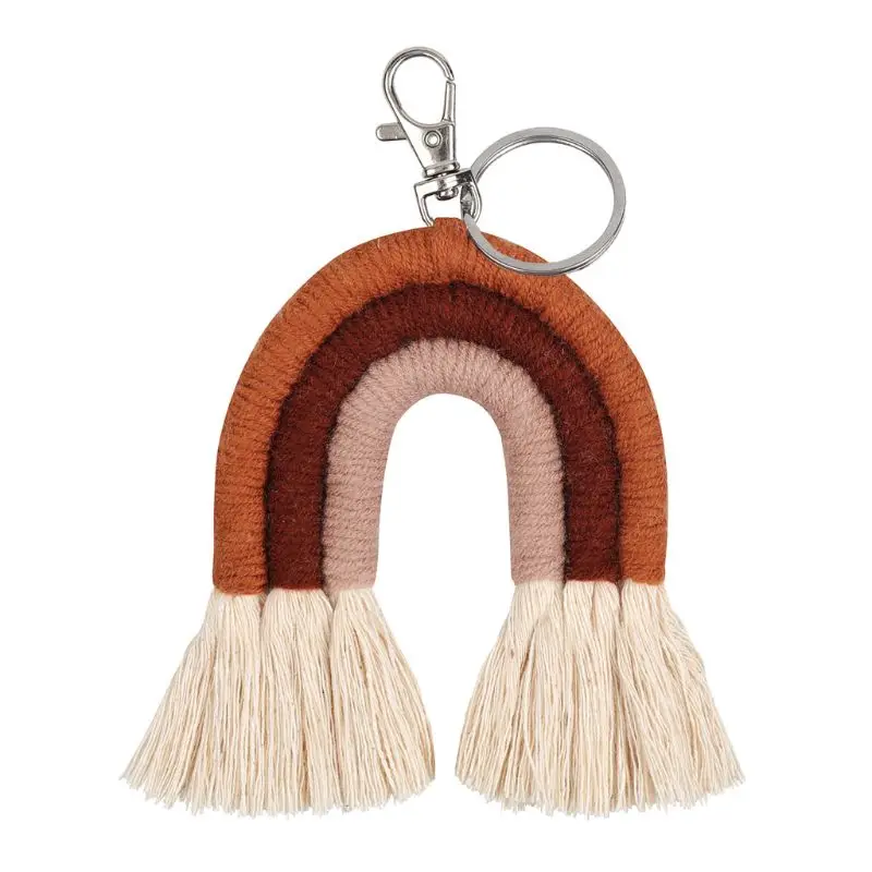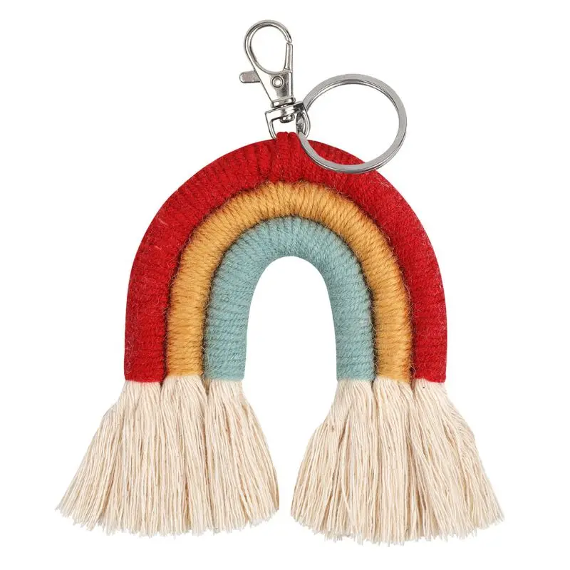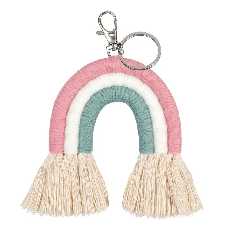Weaving Rainbow Keychains for Women Boho Handmade key Holder Keyring Macrame Bag Charm Car Hanging Jewelry Gifts