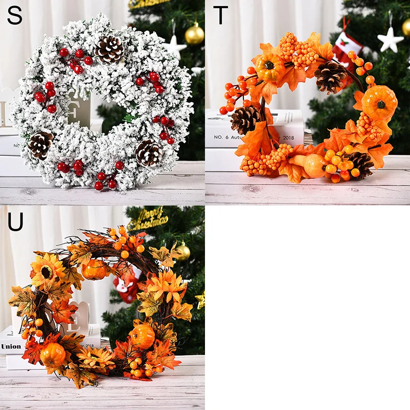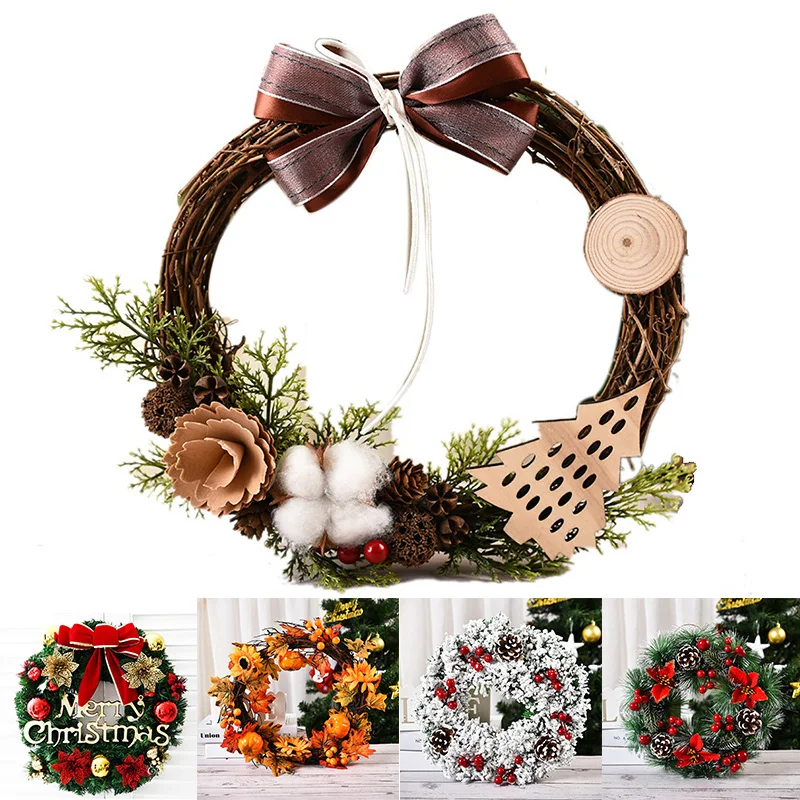 Wreath With Bow Door Hanging Rattan Ornament Garland Xmas Wall Window Wedding Decorations Home Decor Leaves