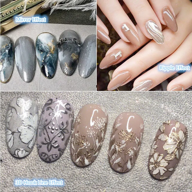 Metal Effect Nail Gel Rose Gold Silver UV LED Draw Painting Stamping Nail Art Color Gel Polish Manicure Long Lasting Gel Vernish