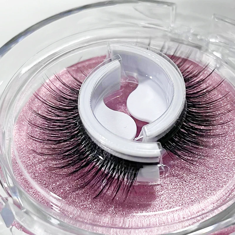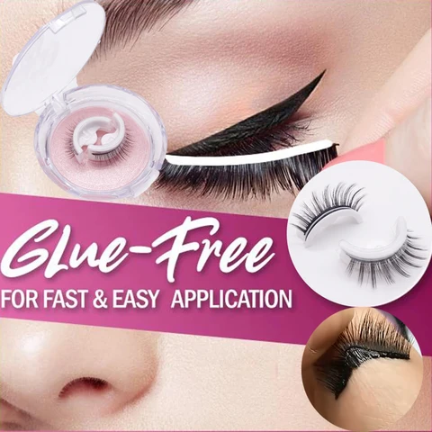 Unlike any normal false eyelashes, and made of natural material, you don't need glue to use this Self-Adhesive Natural Curly Eyelashes! You take it from its case, and just stick it right away! After using it, wash it with clean water, dry it, and you can use it again. It/'s literally that simple: peel, trim, press, instant glamour!