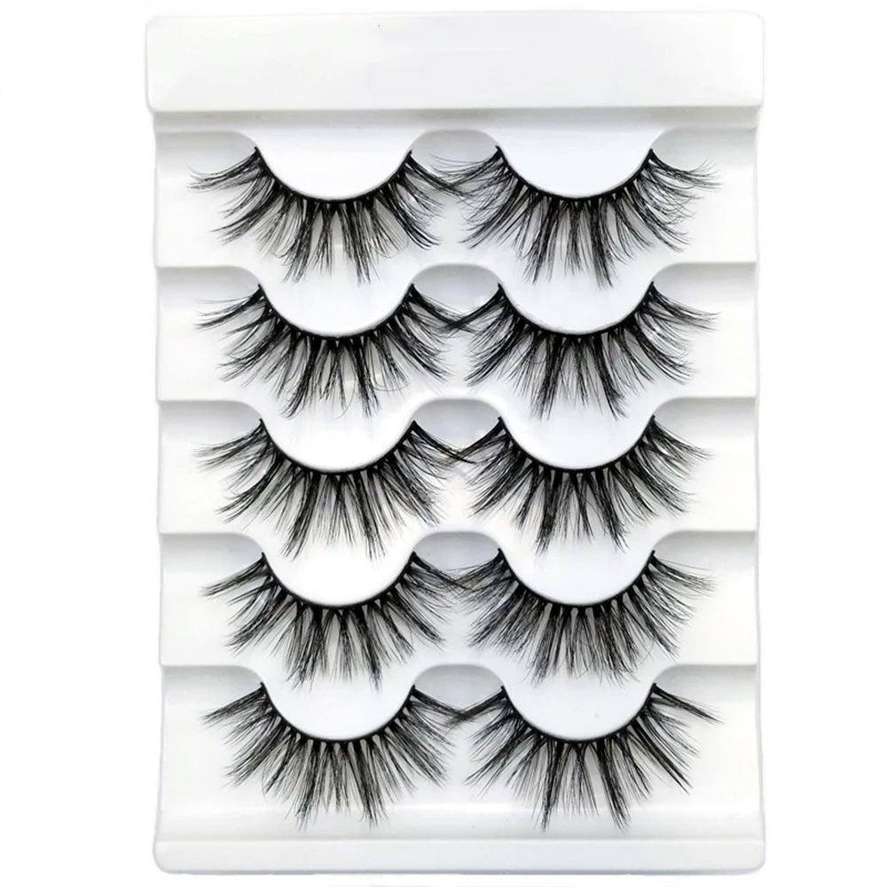 5 Pairs 3D/5D Faux Mink Hair False Eyelashes Natural Long Full Volume Fluffy Wispies Lashes Handmade Eyelashes Extension Tools