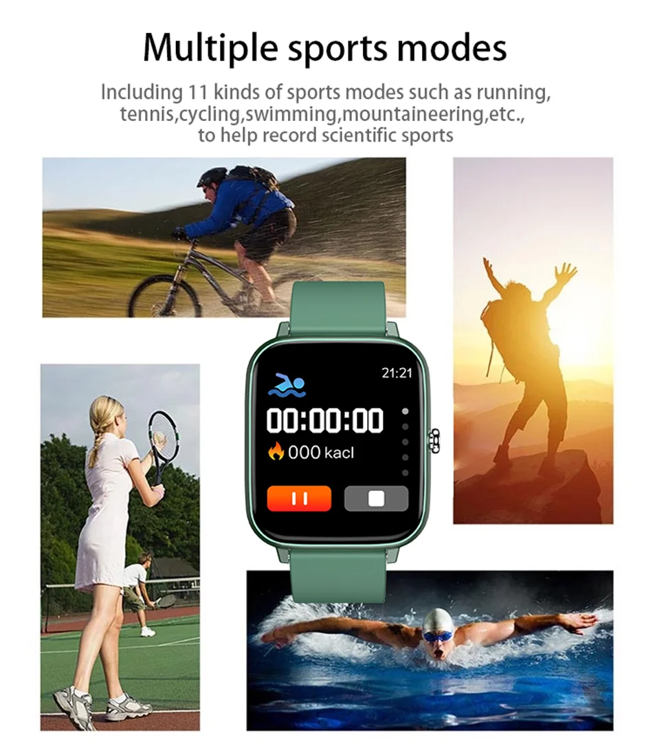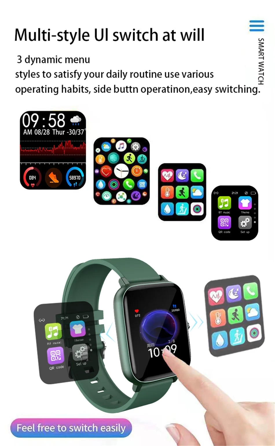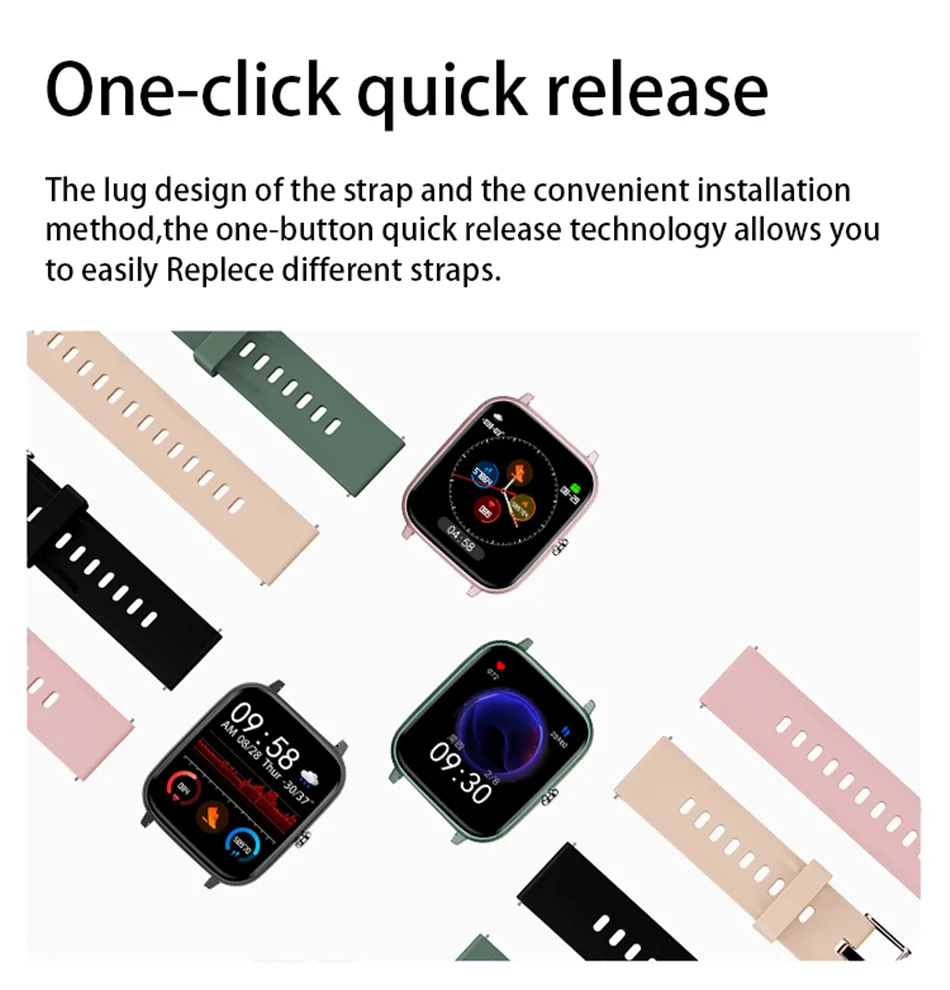 Custom dial, music control function. Bluetooth call reminder, social APP reminder, message reminder, sedentary reminder, blood pressure, blood oxygen, exercise mode, alarm clock, play music, stopwatch