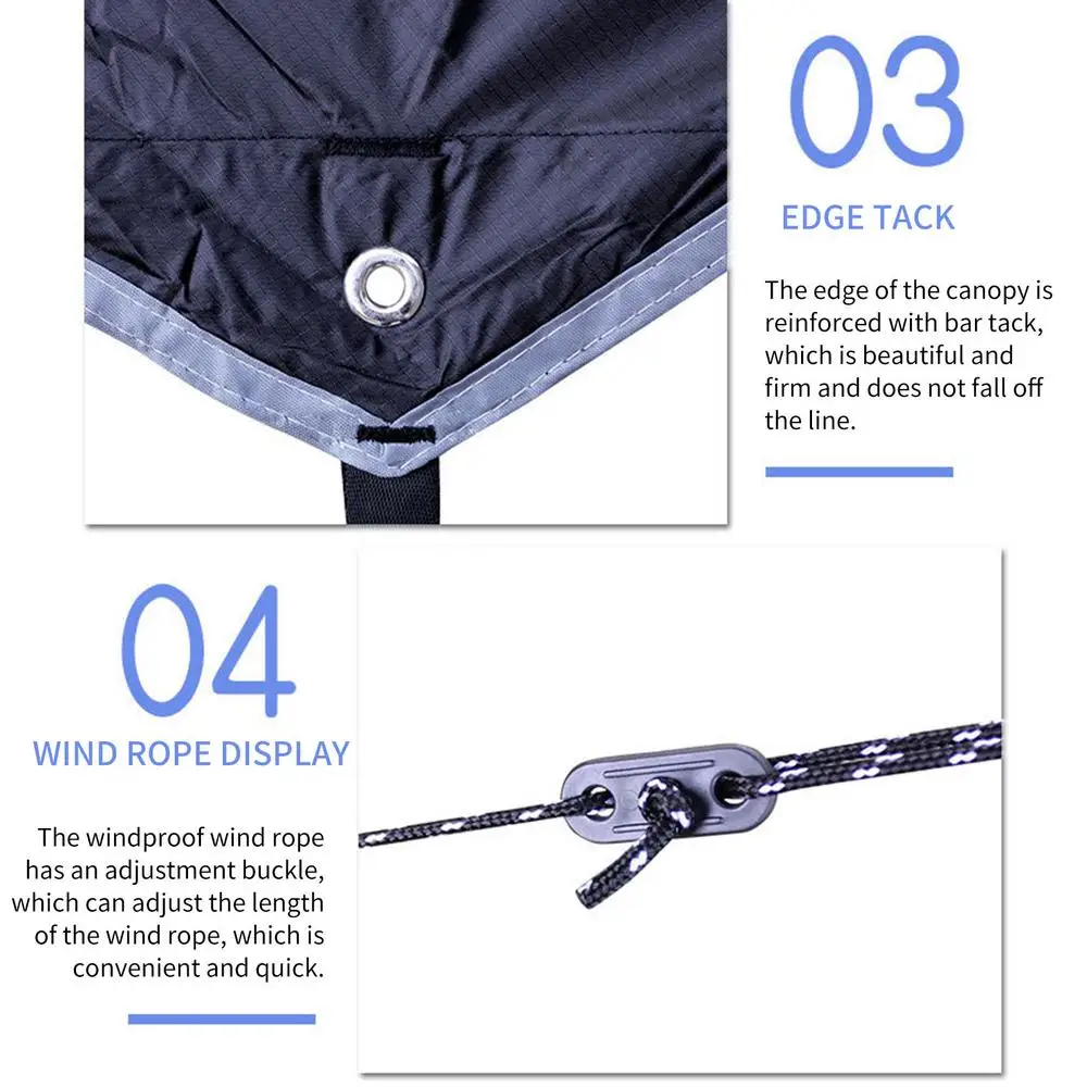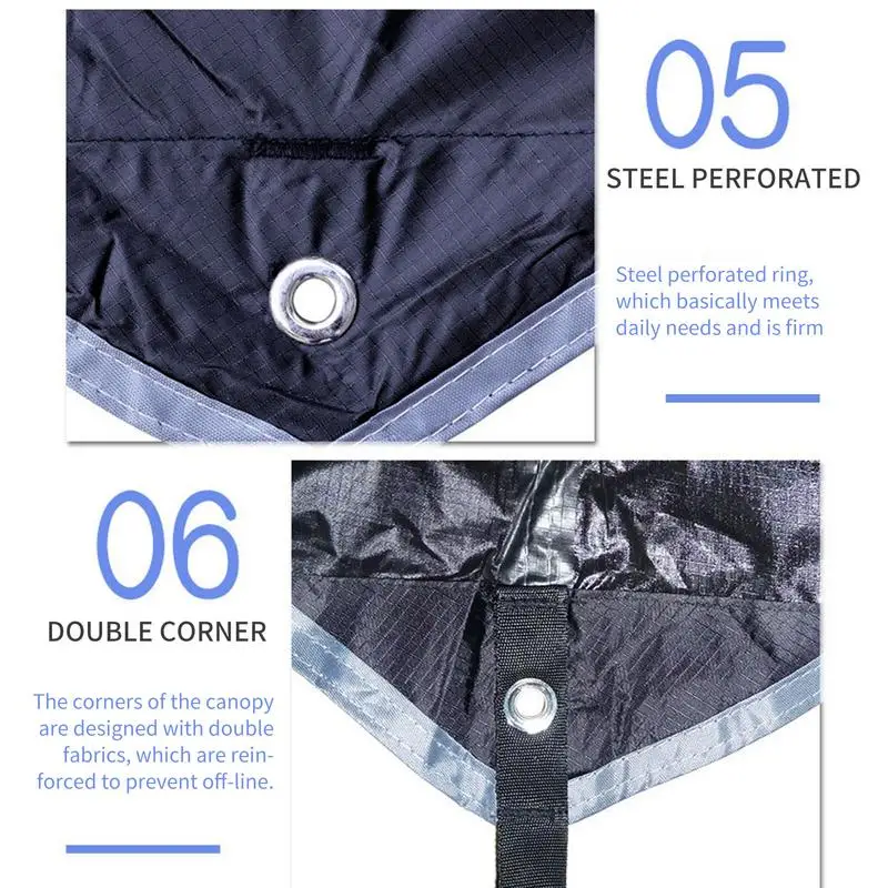 4.UV protection: Our camping rain fly tarp can protect you from rain, snow, and sun damage. You can stay dry, safe, and comfortable in any weather environment