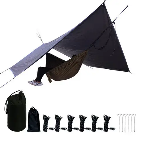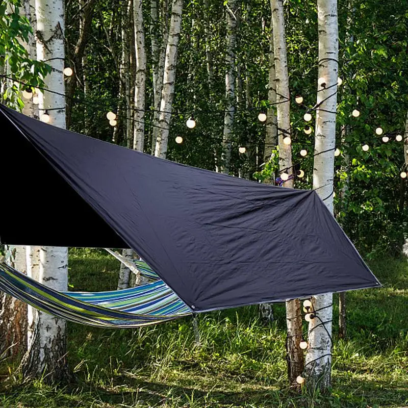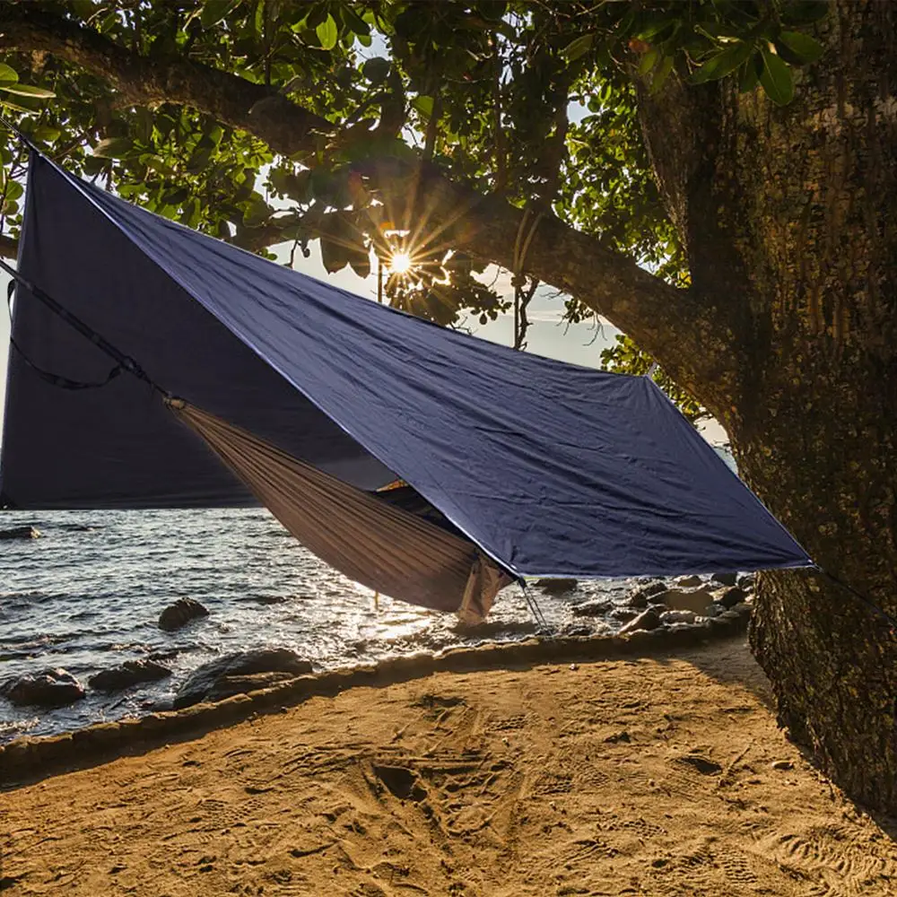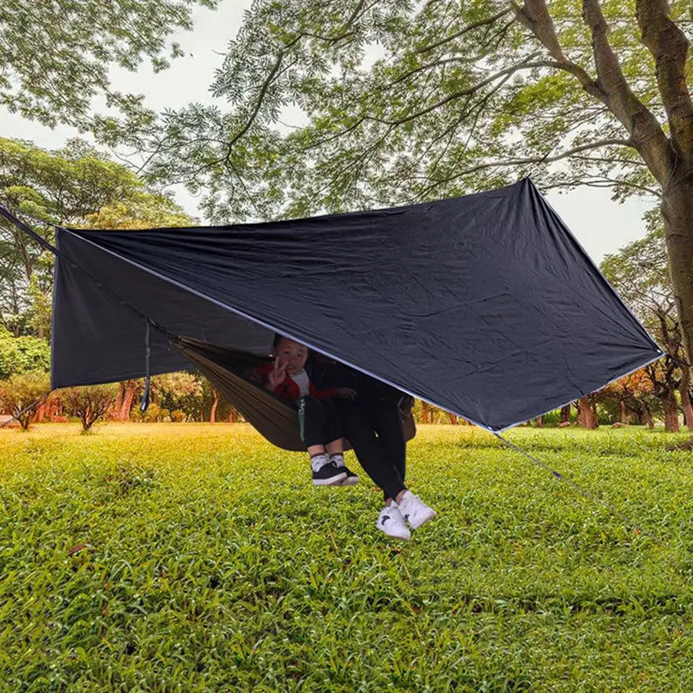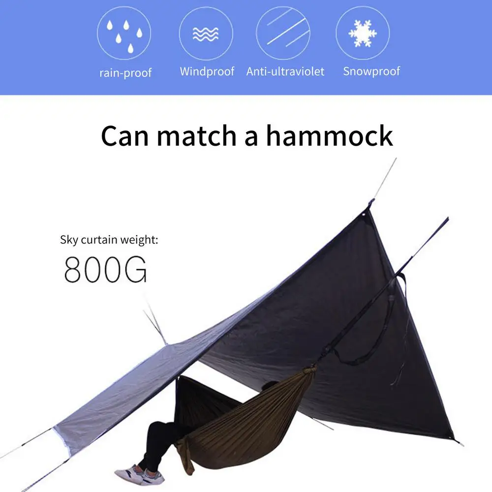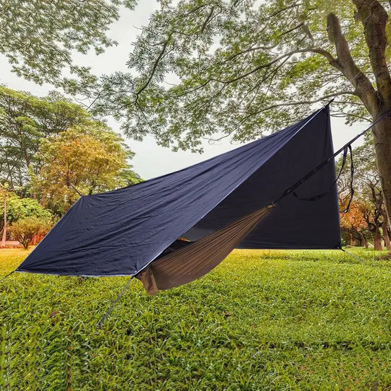 This lightweight and portable Hammock Camping Tarp have the function of SPF 50+ UV protection, a water-resistant sunshade that provides a relaxing place to watch a soccer game or have a picnic. Camping Hammock is suitable for all outdoor activities: such as surfers, and camping enthusiasts.