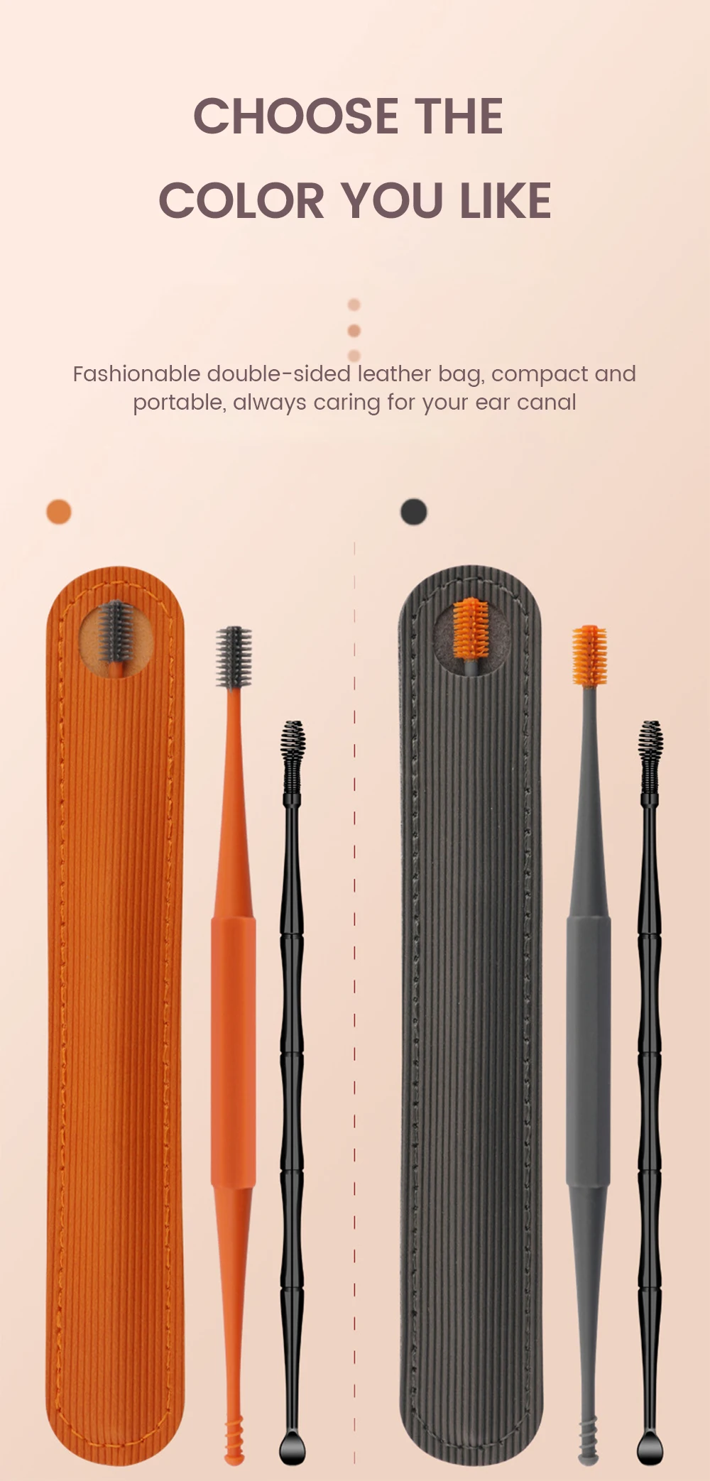 2 PCS Soft Silicone Earwax Remover Portable Ear Cleaner Stainless Steel Earwax 2 Head Ear Picks Earwax Curette Remover Ear Pick