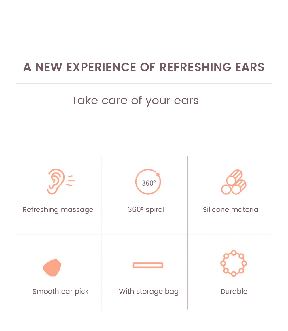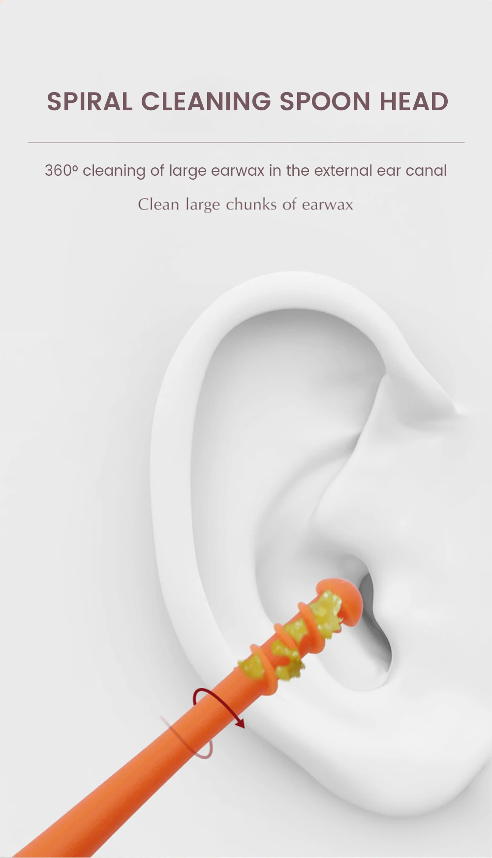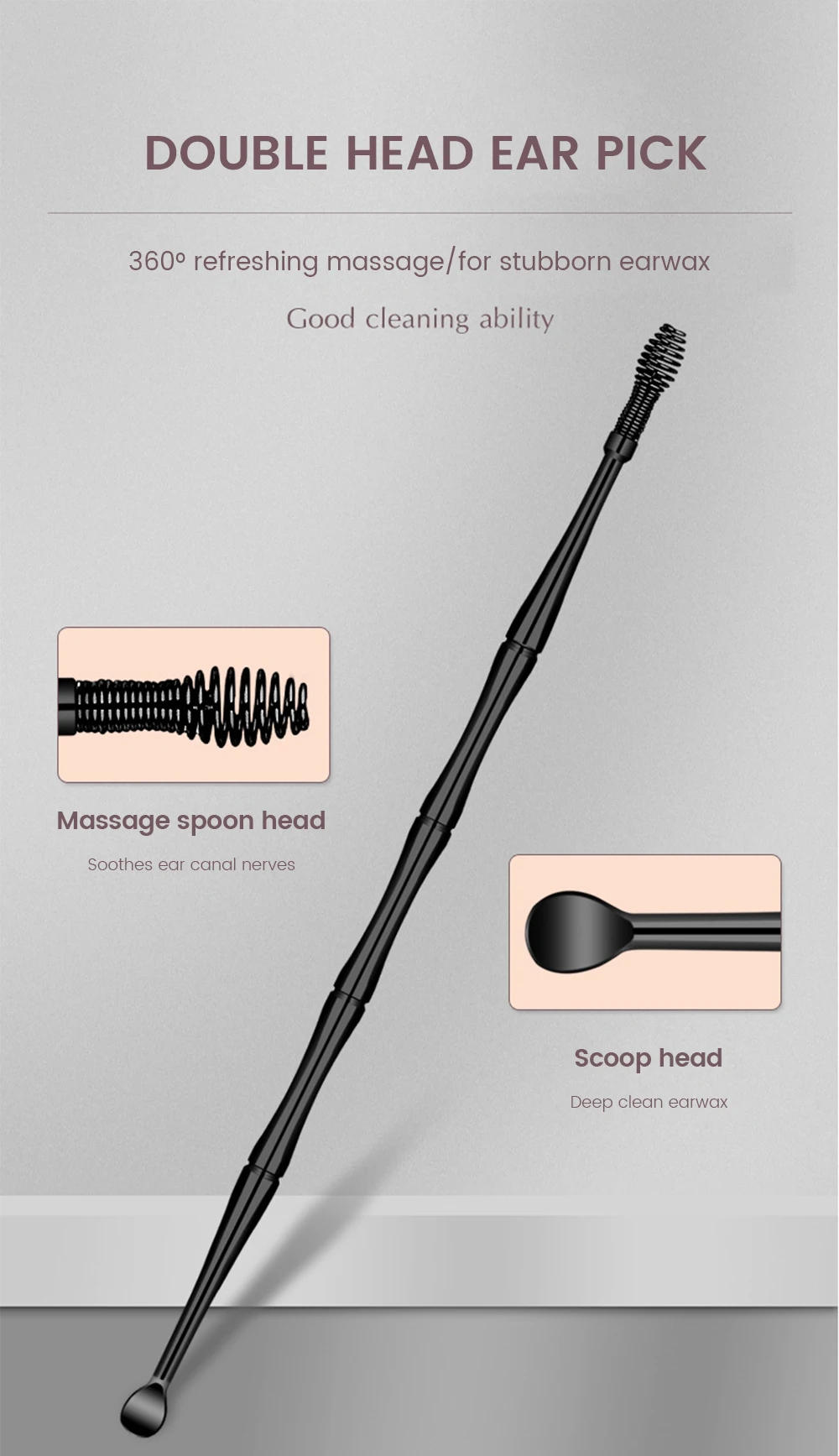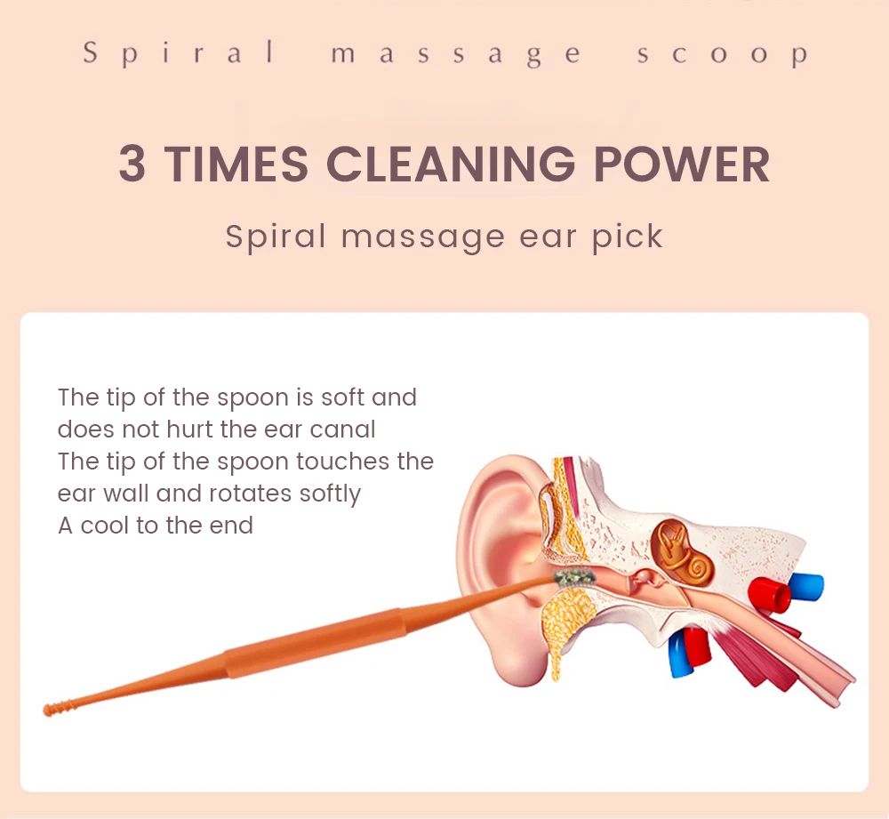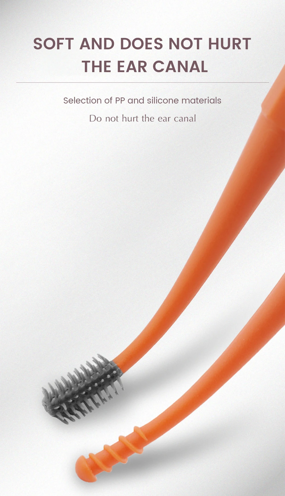 3. Double head design: soft silicone brush head, soft and comfortable, gentle and not hurting the ears. Spiral head relieves earache, removes larger earwax 360 degrees