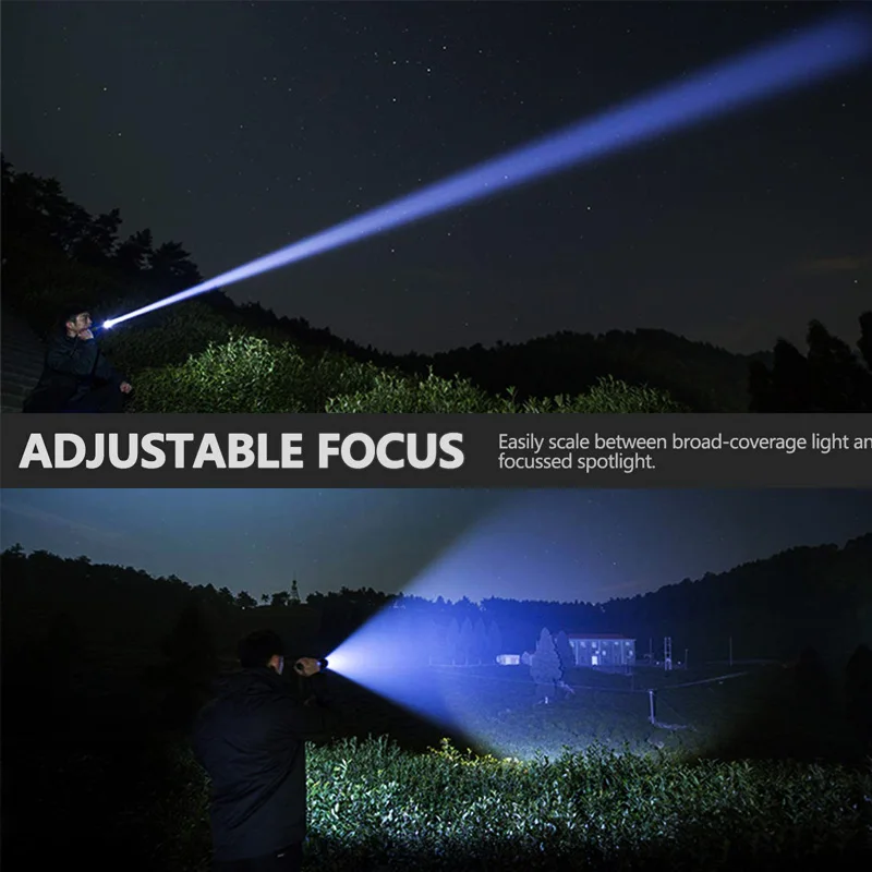 ★Zoom Adjustable ---Flashlight telescopic zoom,allows you to select focus between spot and flood beam.