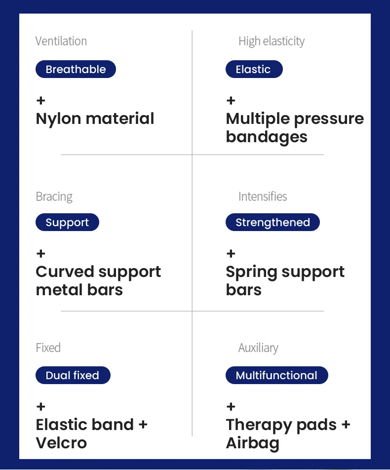 2. Velcro + Elastic bandages, X arrangement, dual fixation, increase support force, fit body curve