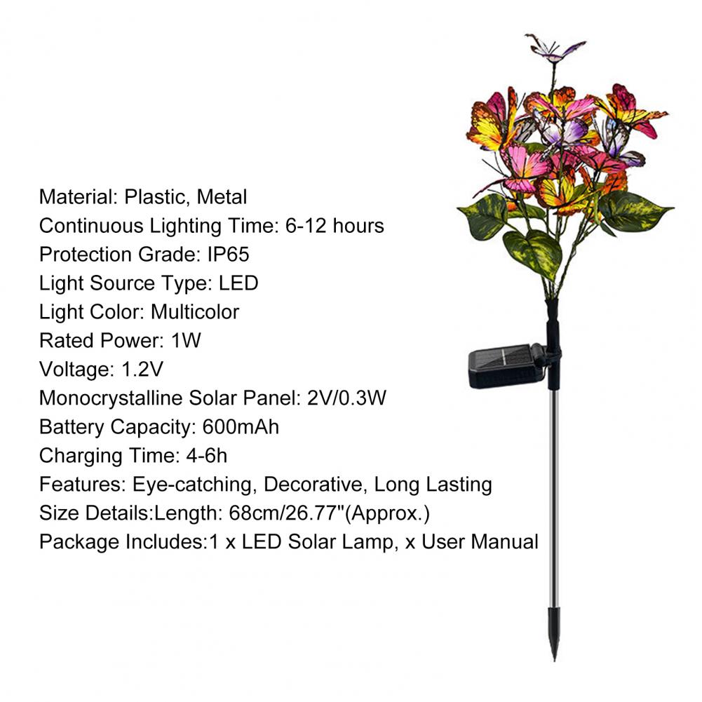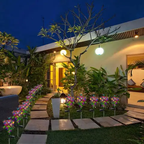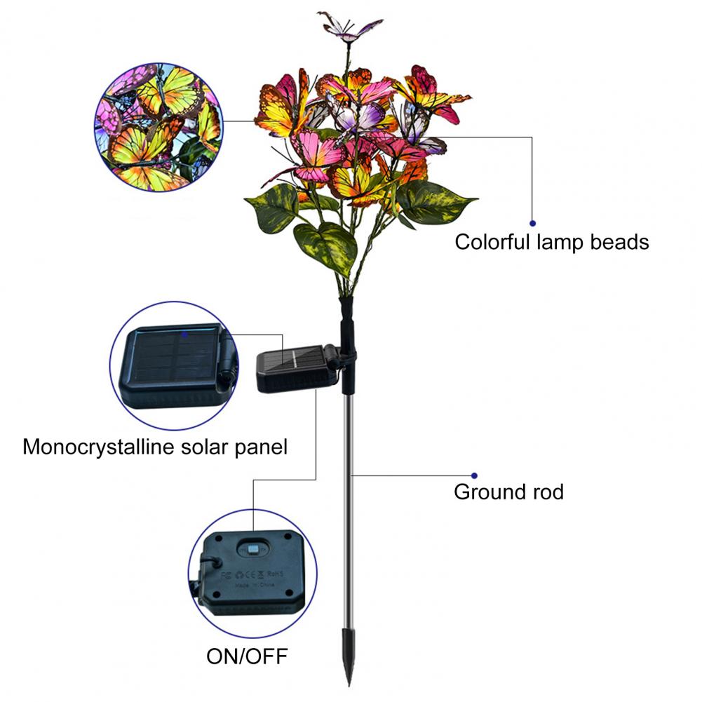 By adopting colorful butterflies decorations design, these garden lights will add beauty to the dull space and make the guests attracted at first glance. Ideal for gardens, yards, patios and various kinds of occasions, adding more color.