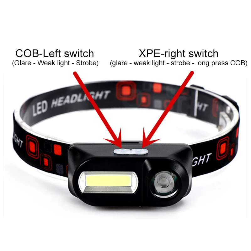 2.Two independent buttons for six lighting modes (COB highlight - COB mid - COB flash - XPE highlight - XPE low - XPE flash) meet your different needs.