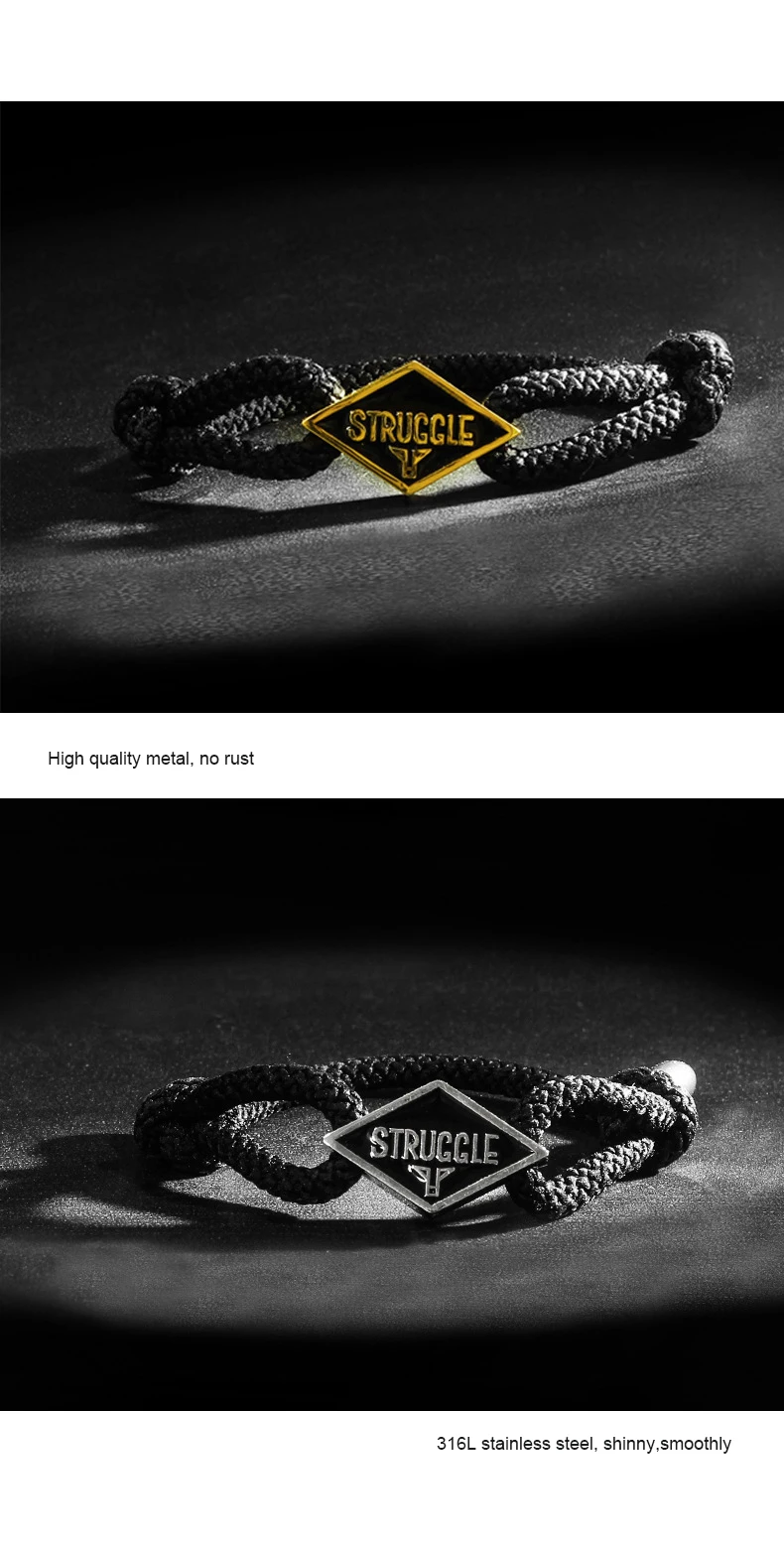 hippie Rhombic stainless steel STURGGLE rope bracelet for women men jewelry bracelets gift pulseras para hombre accesorios mujer
