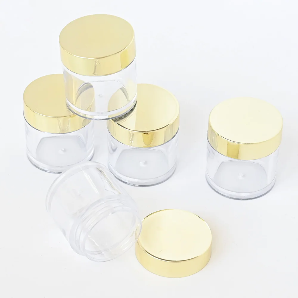 Transparent Pot Pet empty powder box 20/50/100Pcs 10ml empty cosmetic jar With Gold Cap x10g clear-sided jars with gold cover&*&