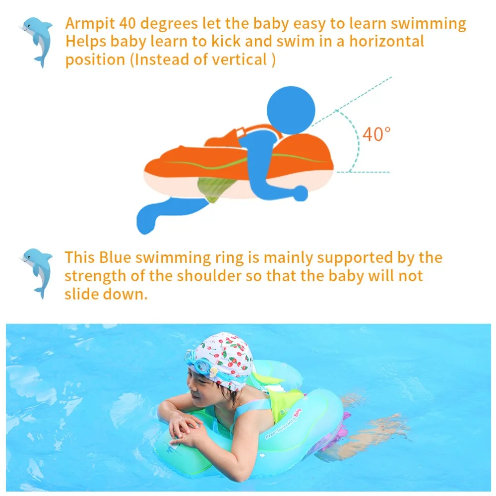 - UNIQUE DESIGN TO PREVENT ROLLOVER: Unlike traditional baby swimmers, our baby swimfloats feature a comfortable vest part. The front part is raised and prevented from turning forward, and the wings on both sides are widened and prevented from rolling over.