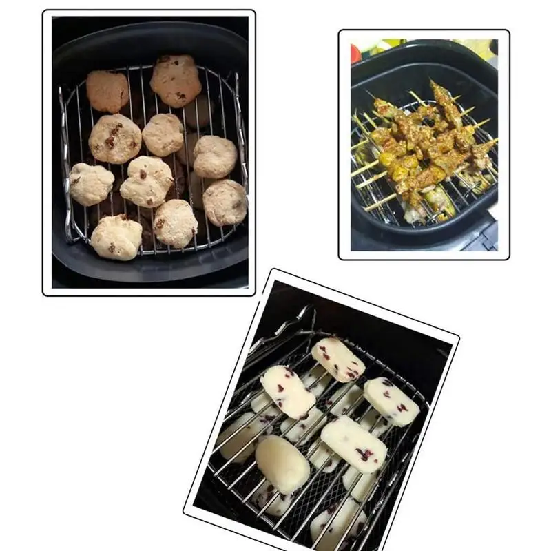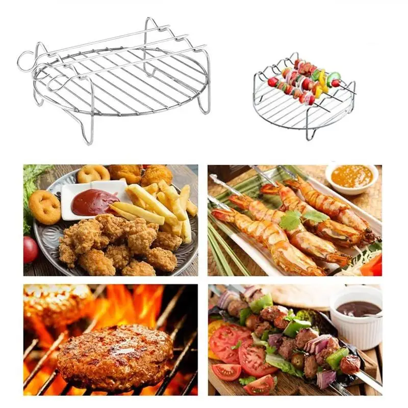 Fryer Rack Skewers Accessories Double Layer Versatile Roasting Grill Tray Home Bbq Replacement Holder Round Baking X3k9