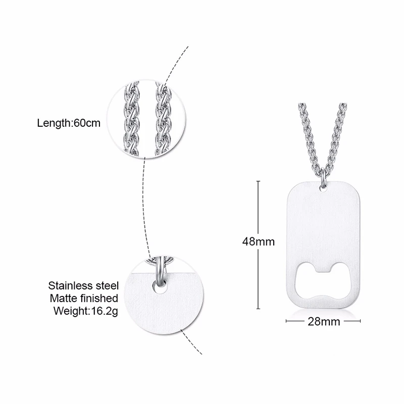 Opener Stainless Steel Dog Tag Pendant Personalised Necklace Perfect for Father's Day
