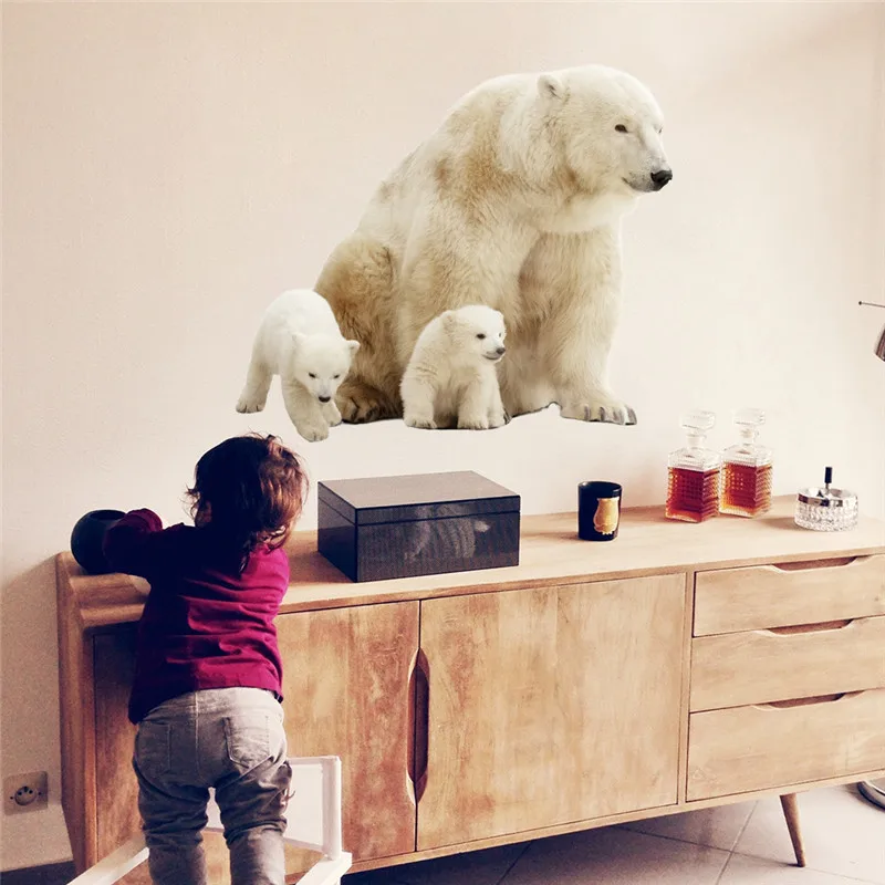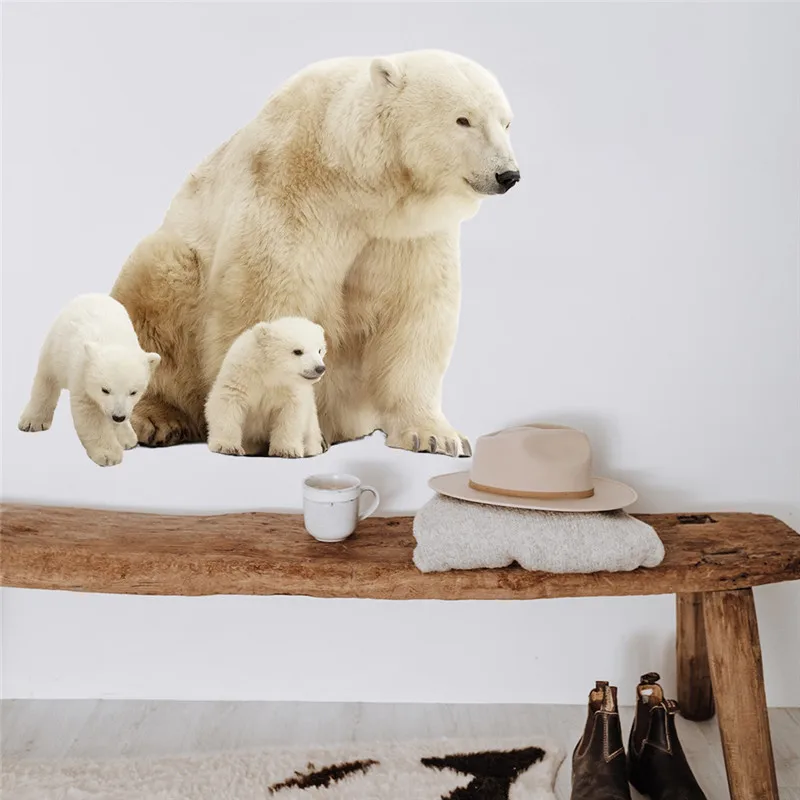 Polar Bear Mother And Baby Wall Sticker Home Decor Cute Polar Bear Wall Sticker For Kids Room Girls Bedroom Mural Decal Muraux