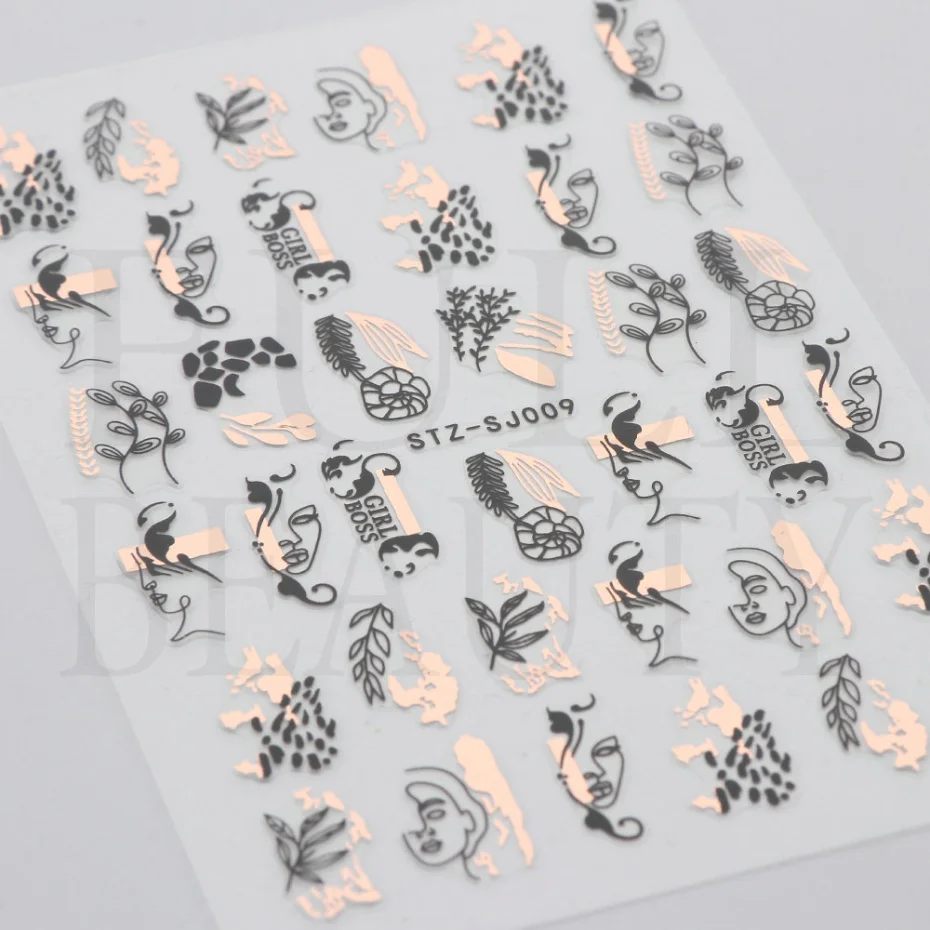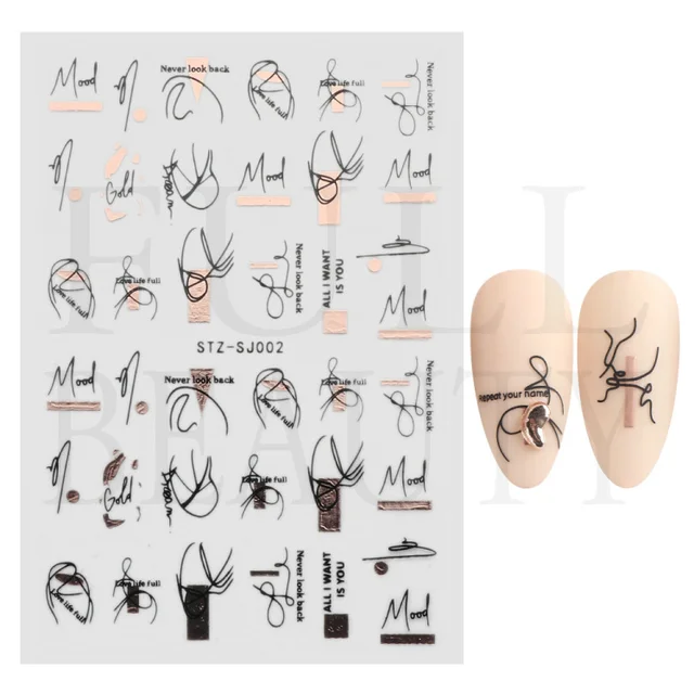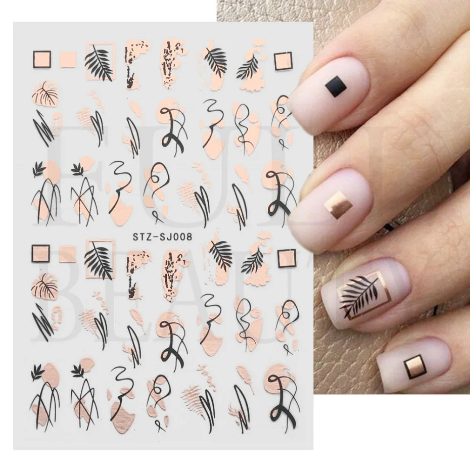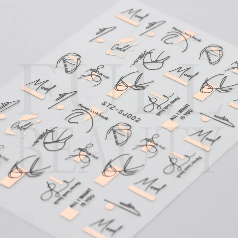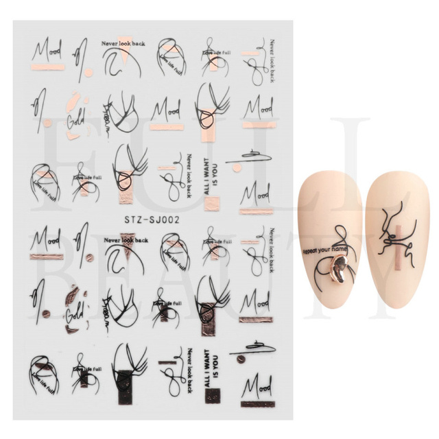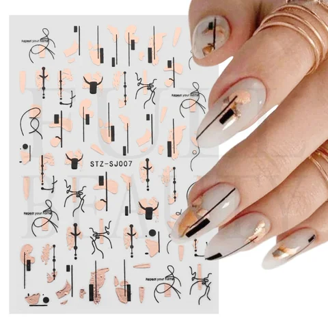 • Graffiti Strips Nail Sticker Rose Gold Abstractline Fashion 3D Slider for Manicure Polish Tattoo Nail Art Decorations LASTZSJ007