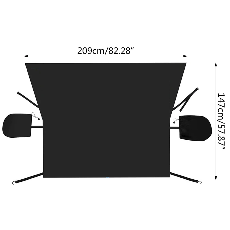 Size: 82.67"upper side X 61"H X 57.8" below side, Bigger than other standard windshield covers, perfectly cover the windshield and wiper. Windshield Snow Ice Cover fit most cars, SUV, and trucks with a width less than 74.8in/190cm. Please measure the size of your windshield before buying, so that you can get the perfect user experience.