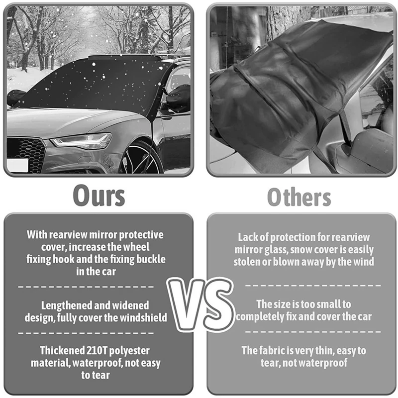 Fits most cars, MPV and SUV. The car windshield snow cover folds easily for storage in the trunk.