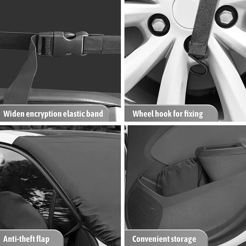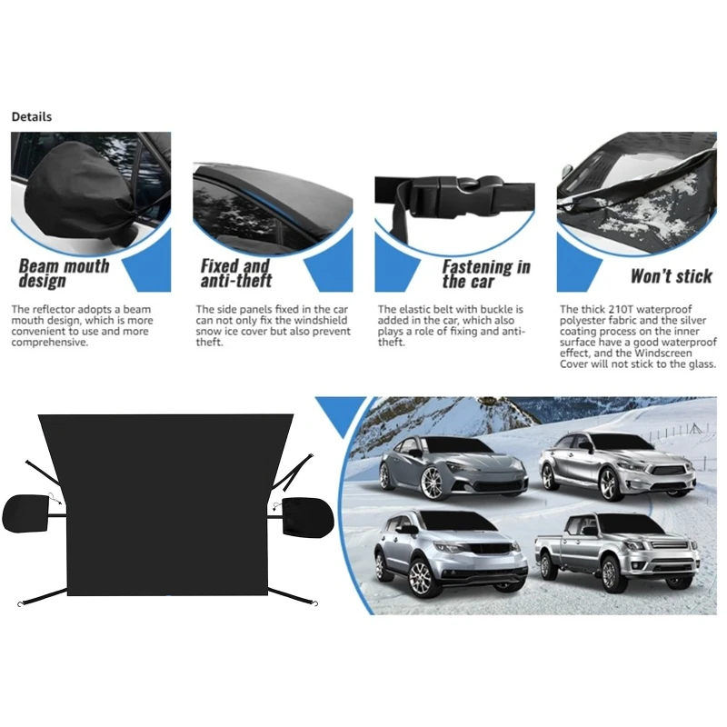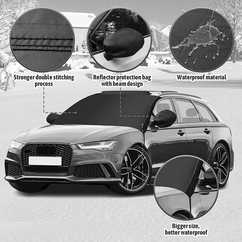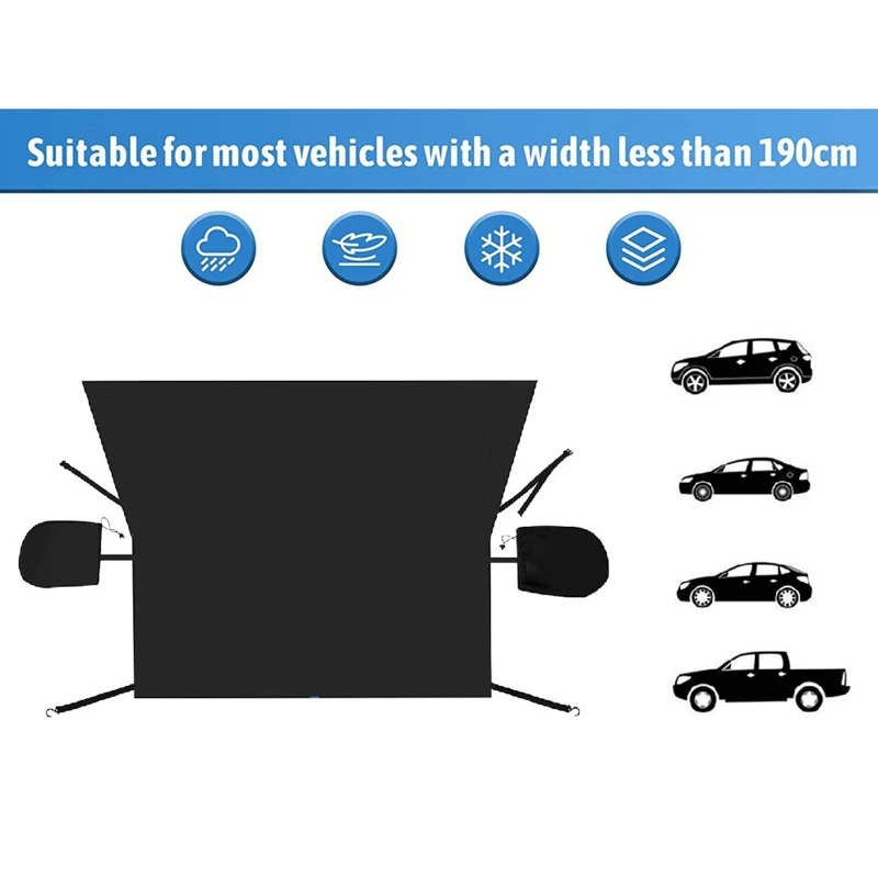 Resistant to rain, frost, snow, UV rays, dust, can be used as a snow guard cover in winter and windshield sun shade in summer as well.
