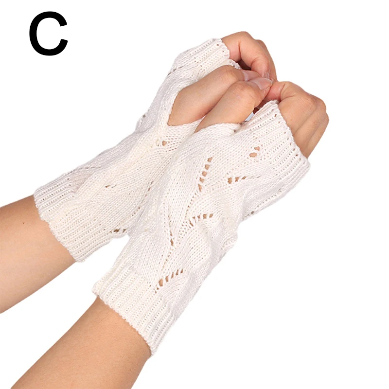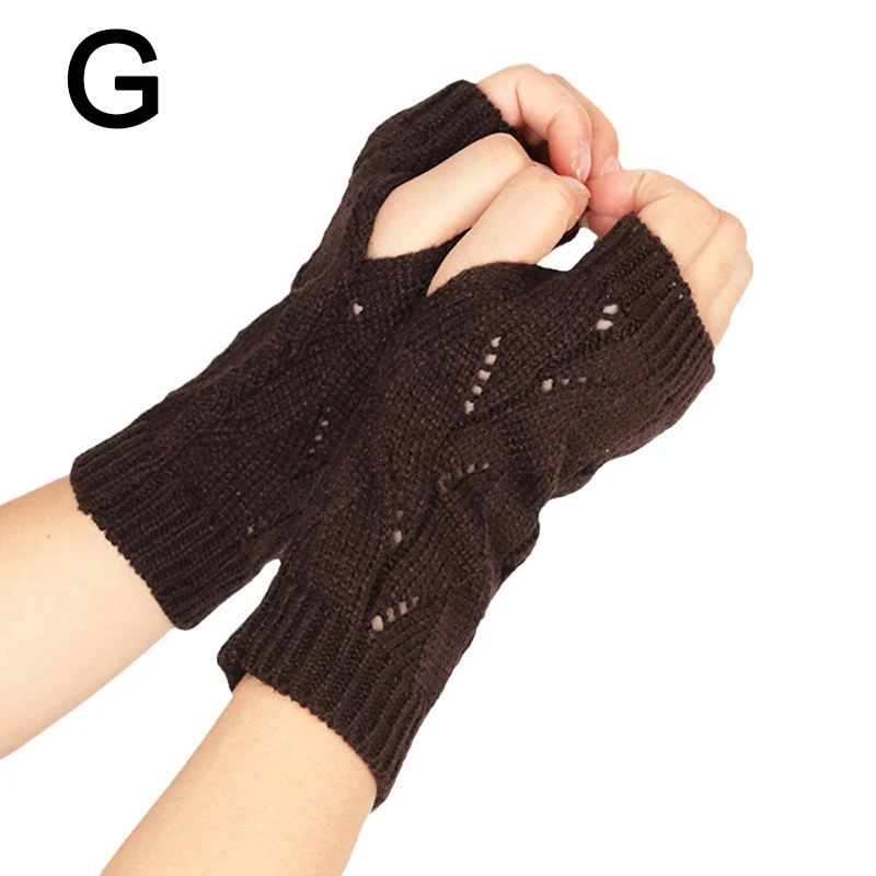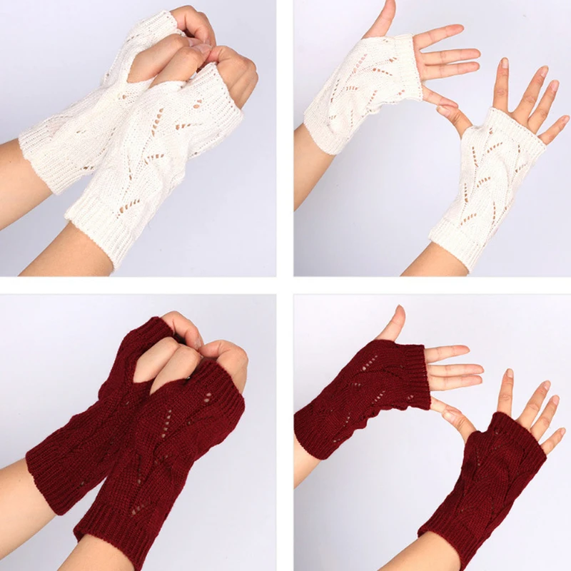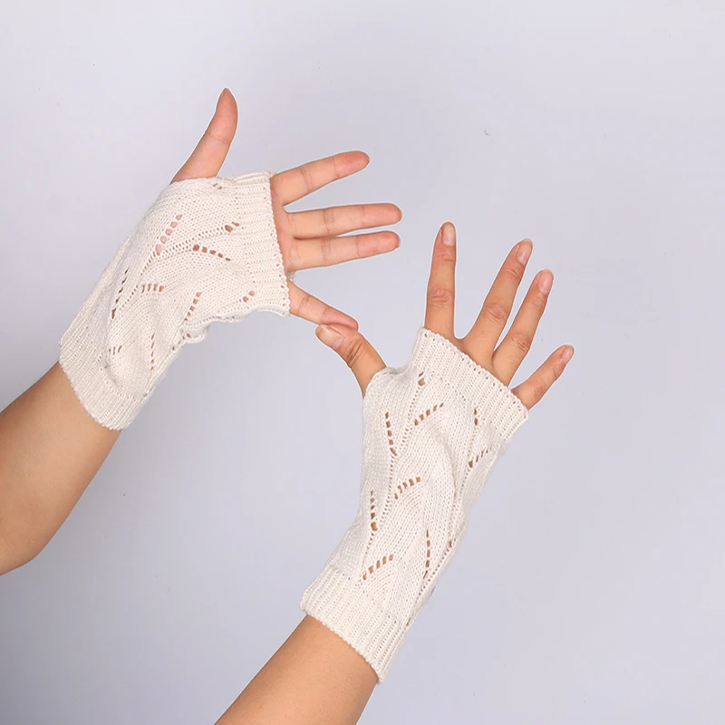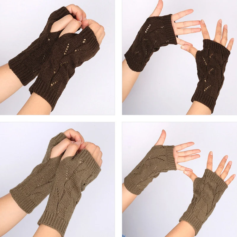Fashion Hollow Half-finger Gloves Solid Color Elastic Knitted Fingerless Gloves Soft Winter Warm Office School Gloves