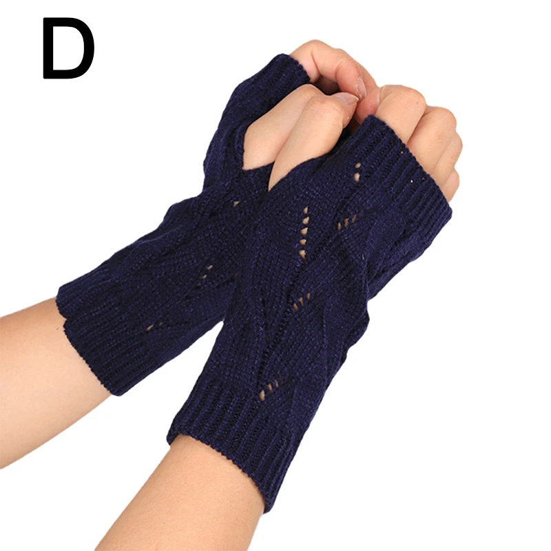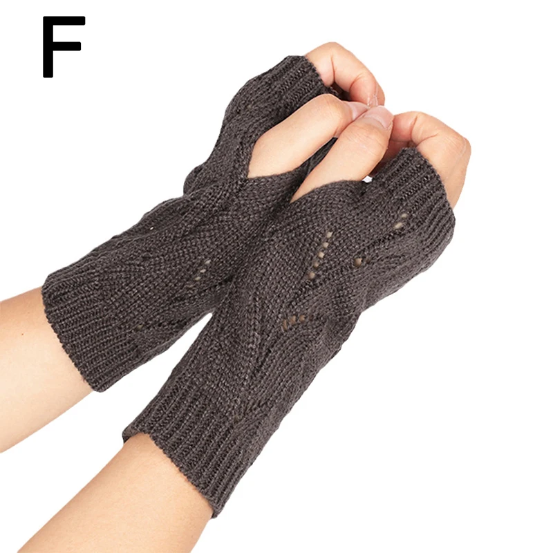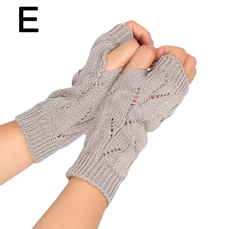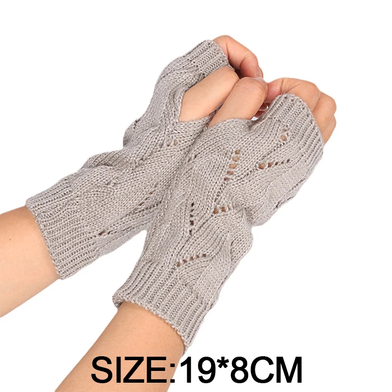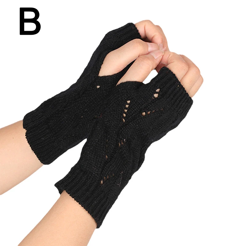 Fashion Hollow Half-finger Gloves Solid Color Elastic Knitted Fingerless Gloves Soft Winter Warm Office School Gloves
