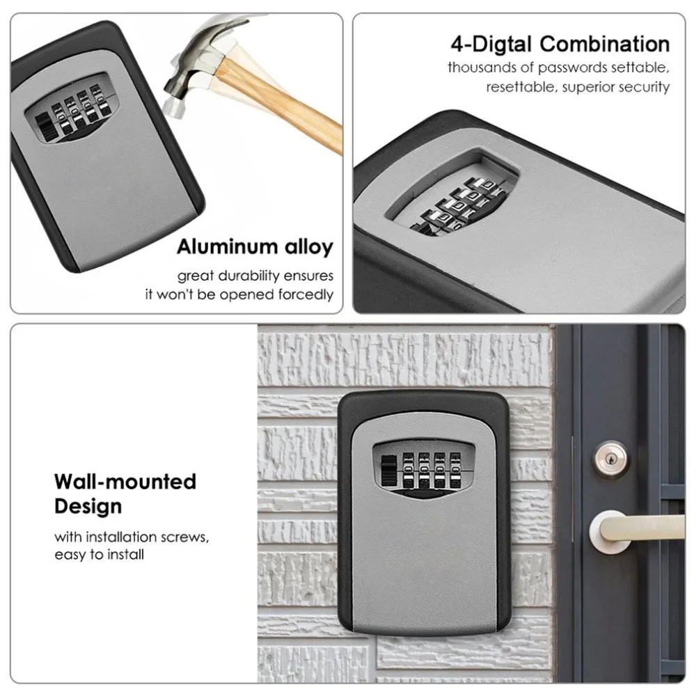 2.This key lock box adopts hard aluminum alloy for durability and this metal material is rust-proof, waterproof and corrosion-resistant.