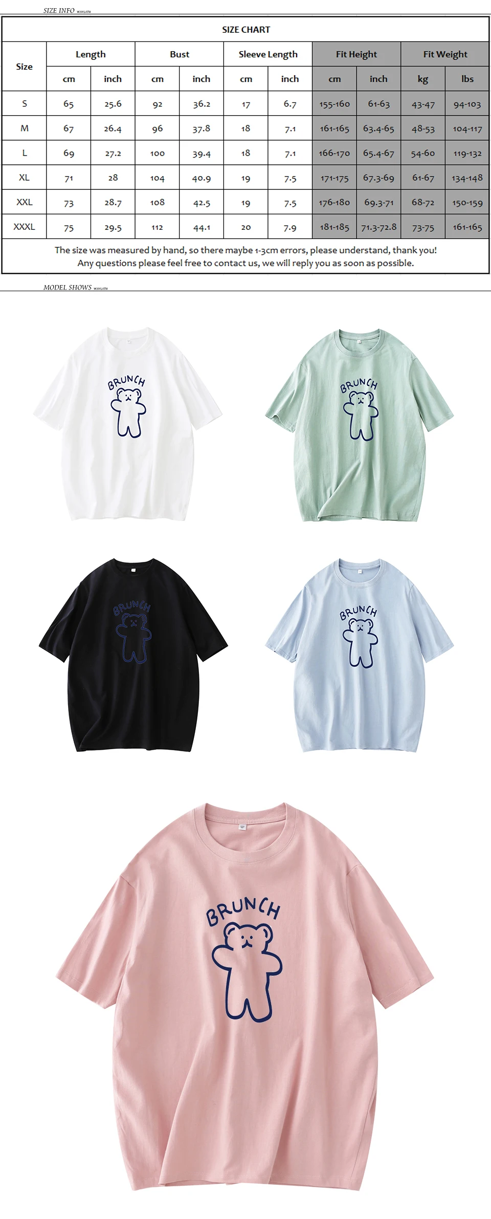 2021 New Women Blue Bear Printed T-shirt Female Cotton White Black Tees Lady Short Sleeve Tshirts Tops WT2129