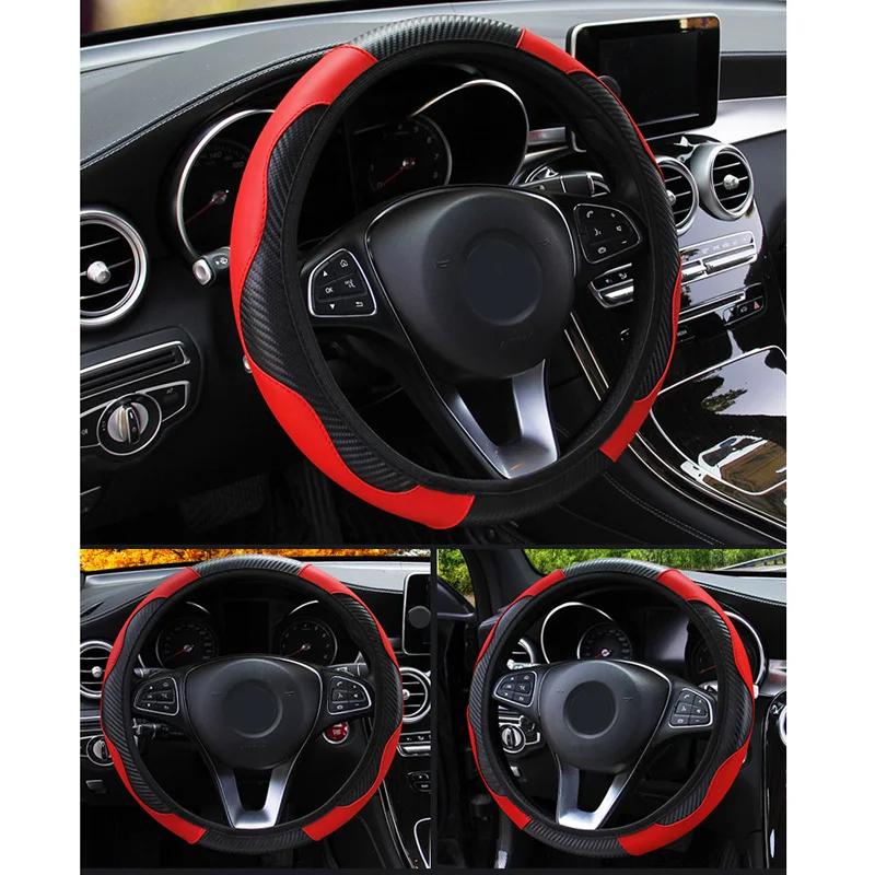 *38CM Car Fashion Carbon Fiber Leather Steering Wheel Cover