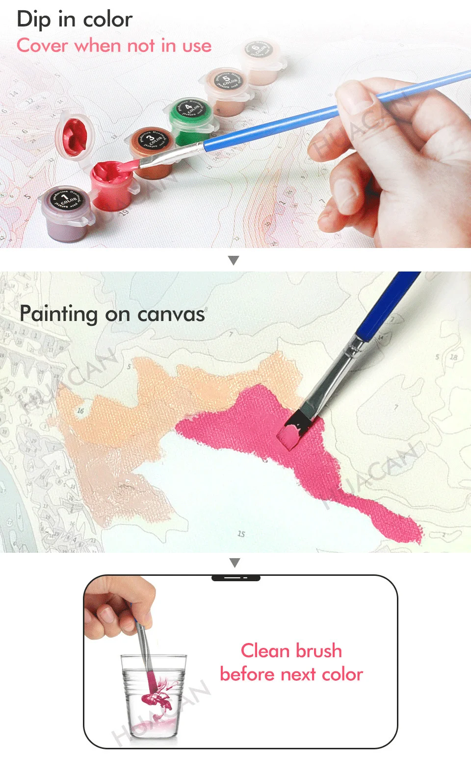 Pay Attention: If there is a bit dry in the process of painting , can be into 1 to 2 drops light agent or water (no more drops)in the paint, stir well after.