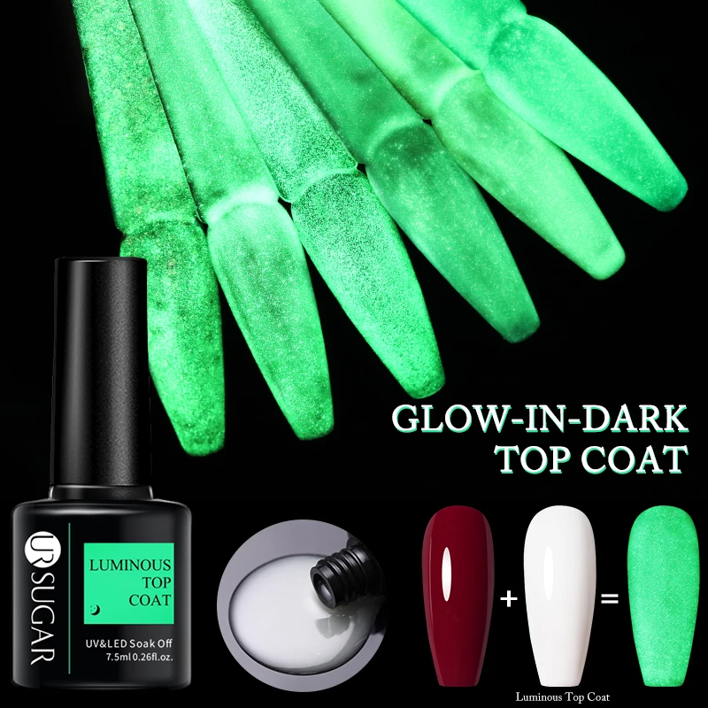 SUGAR Luminous Gel Top Coat Semi Permanent Glow In Dark Fluorescent Soak Off UV LED Color Gel Nail Varnish Nails for Manicure