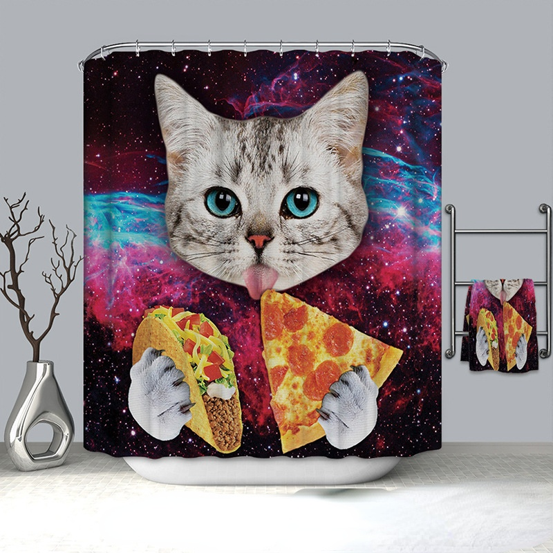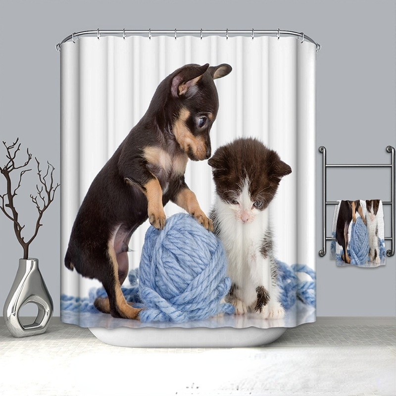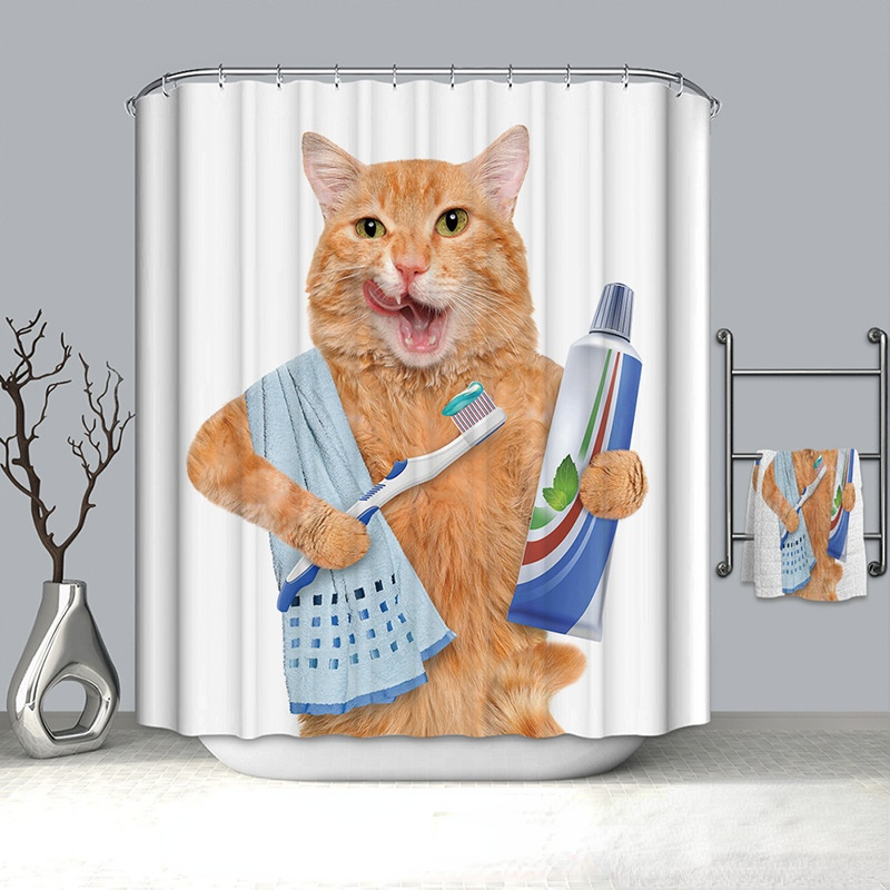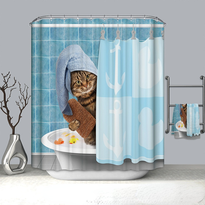 Cat Pattern Shower Curtain 100% Polyester Shower Curtain Waterproof and Mildew-proof Shower Partition Curtain with Hook