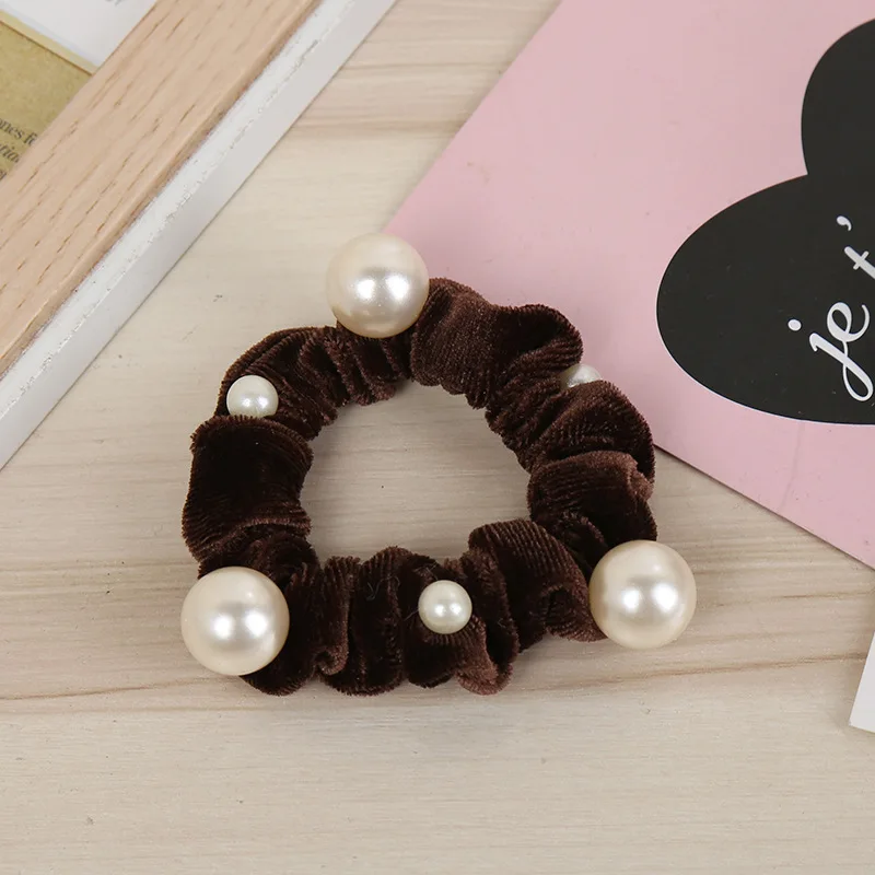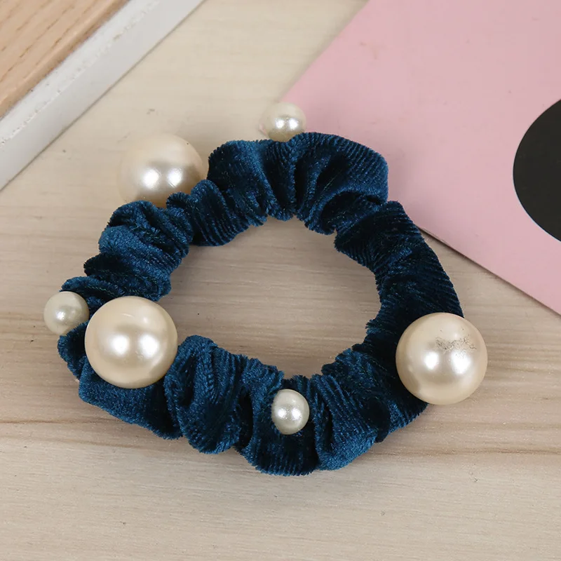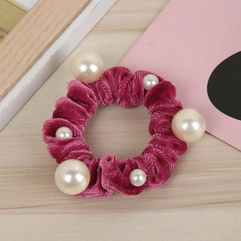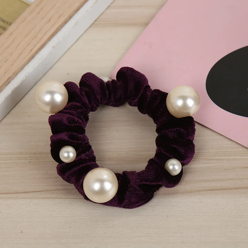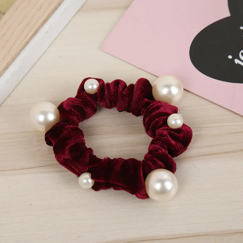 Fashion Women New Arrival Velvet Pearl Elastic Hair Ropes Scrunchies Girls Crease Hair Ties AldultHair Accessories Headwear
