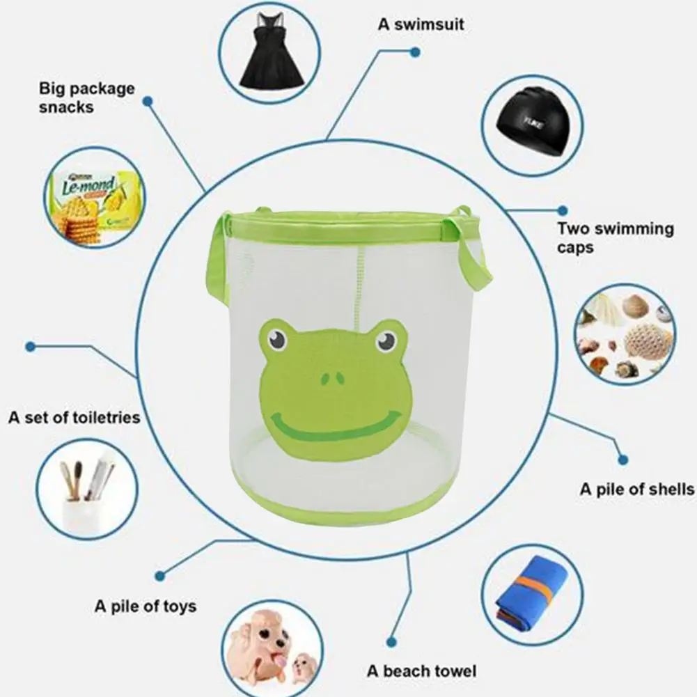 1、Large Mesh Storage Bag: This large mesh storage bag allows you and your baby to store toy balls, snacks, swimming equipment, shells, bath towels, toiletries, etc.