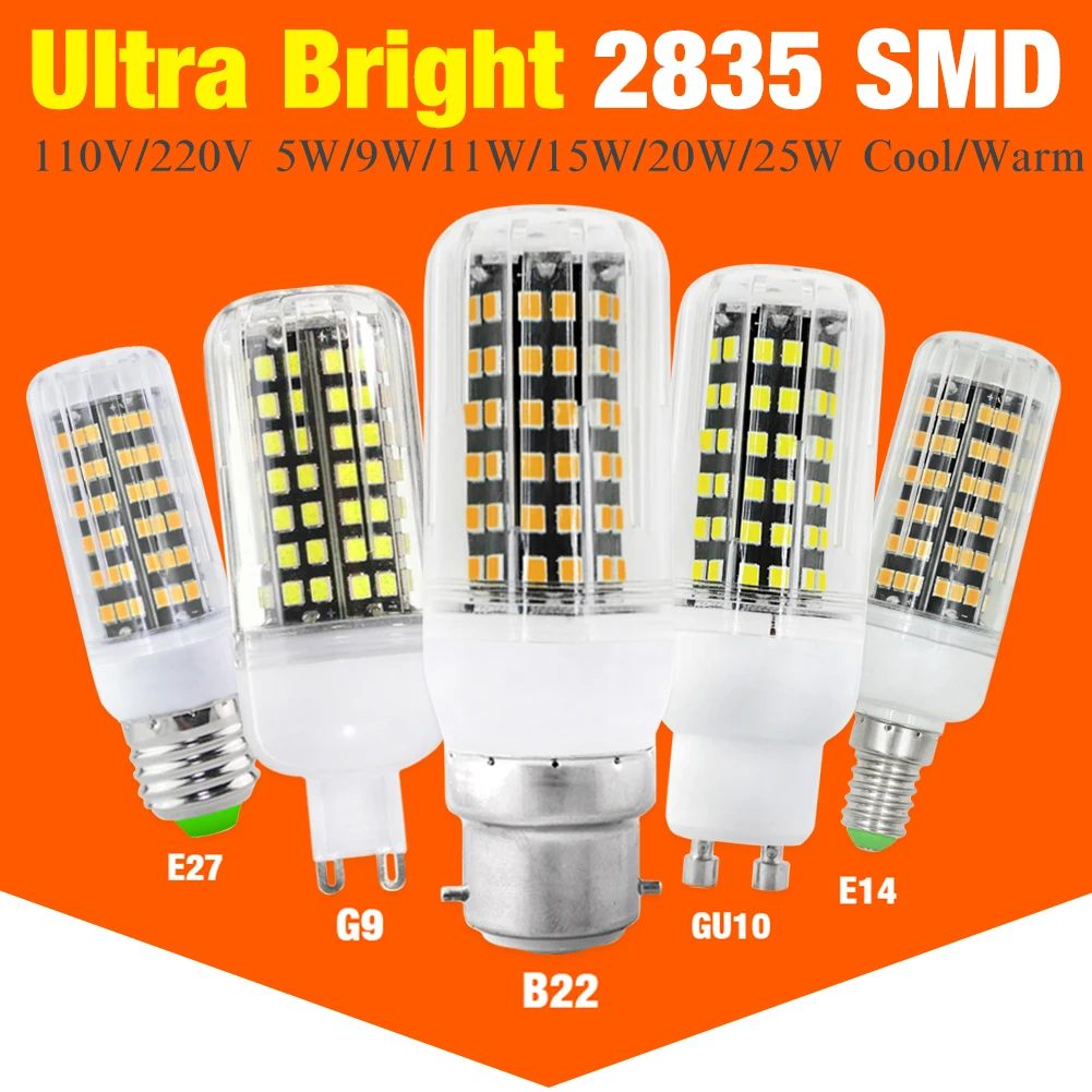 • E14 G9 GU10 B22 Chandelier Lighting Led Bulb SMD2835 Led Lamp Light 240V Led Corn Bulb 220V Corn Lamp 42 84 112 123 144leds