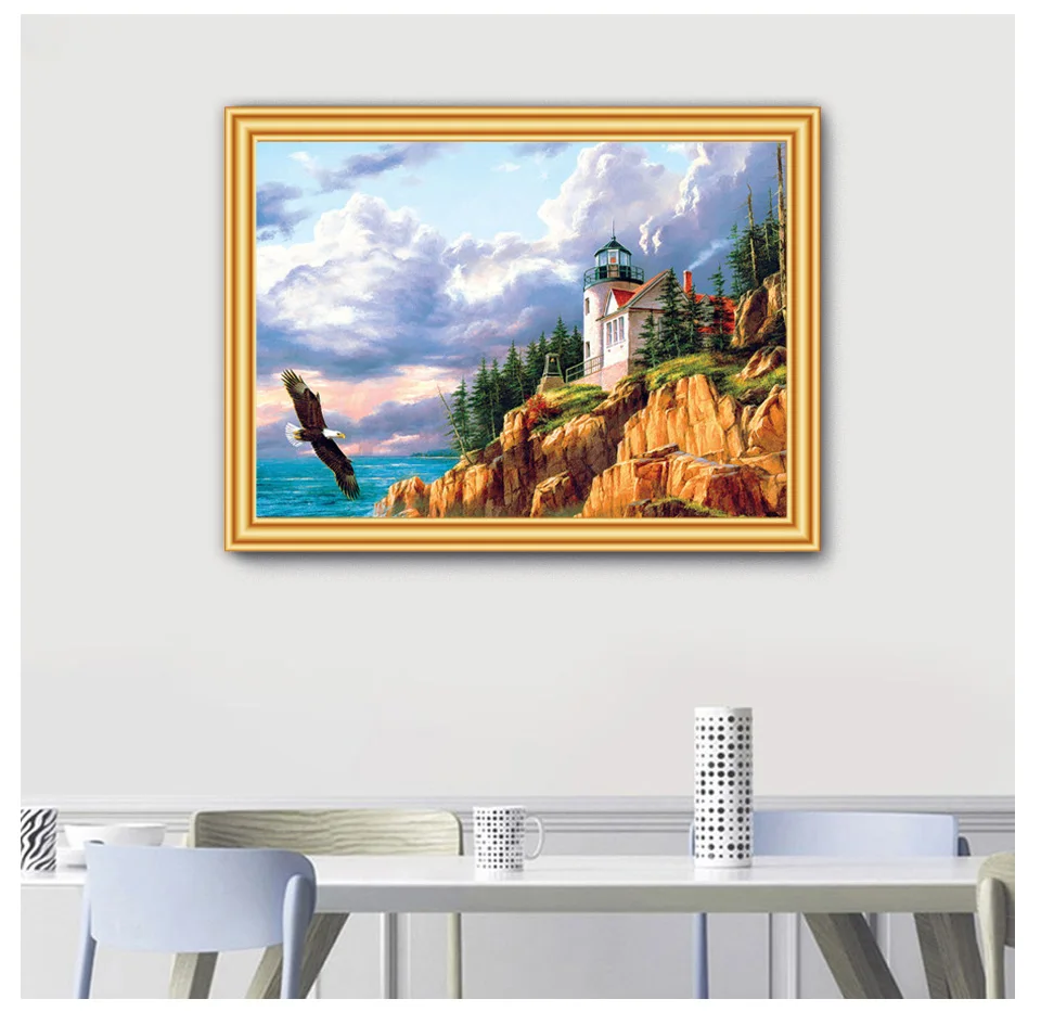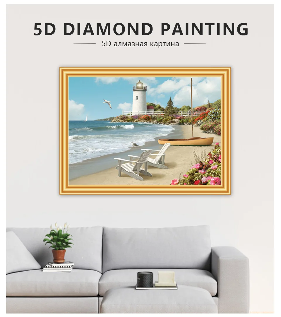 5D Diamond Painting Full Square Landscape Coast Villa Cross Stitch Embroidery Diamond Mosaic Picture of Rhinestones Decor