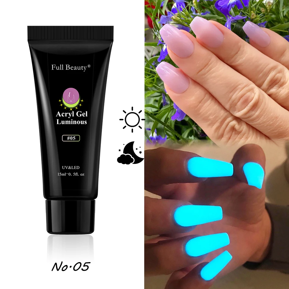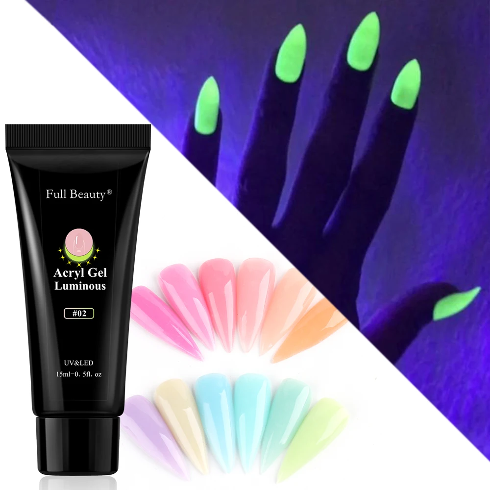 Glowing In Dark Poly UV Extension Gel Luminous Acrygel For Nail Neon Design Reflective Varnishes For Manicure Decor FB1832