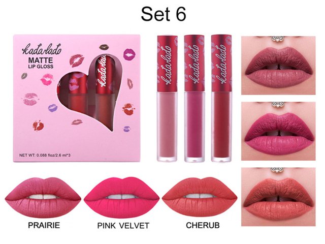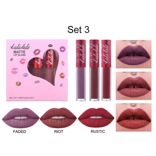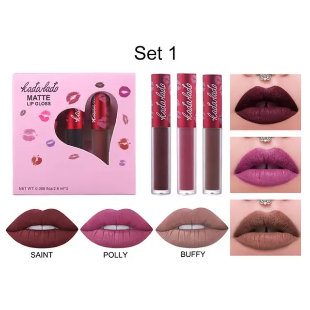 3Pcs/Set Velvet Matte Lipsticks Pencil Waterproof Long Lasting Sexy Red Lip Stick Non-Stick Cup Makeup Lip Tint Pen TSLM1