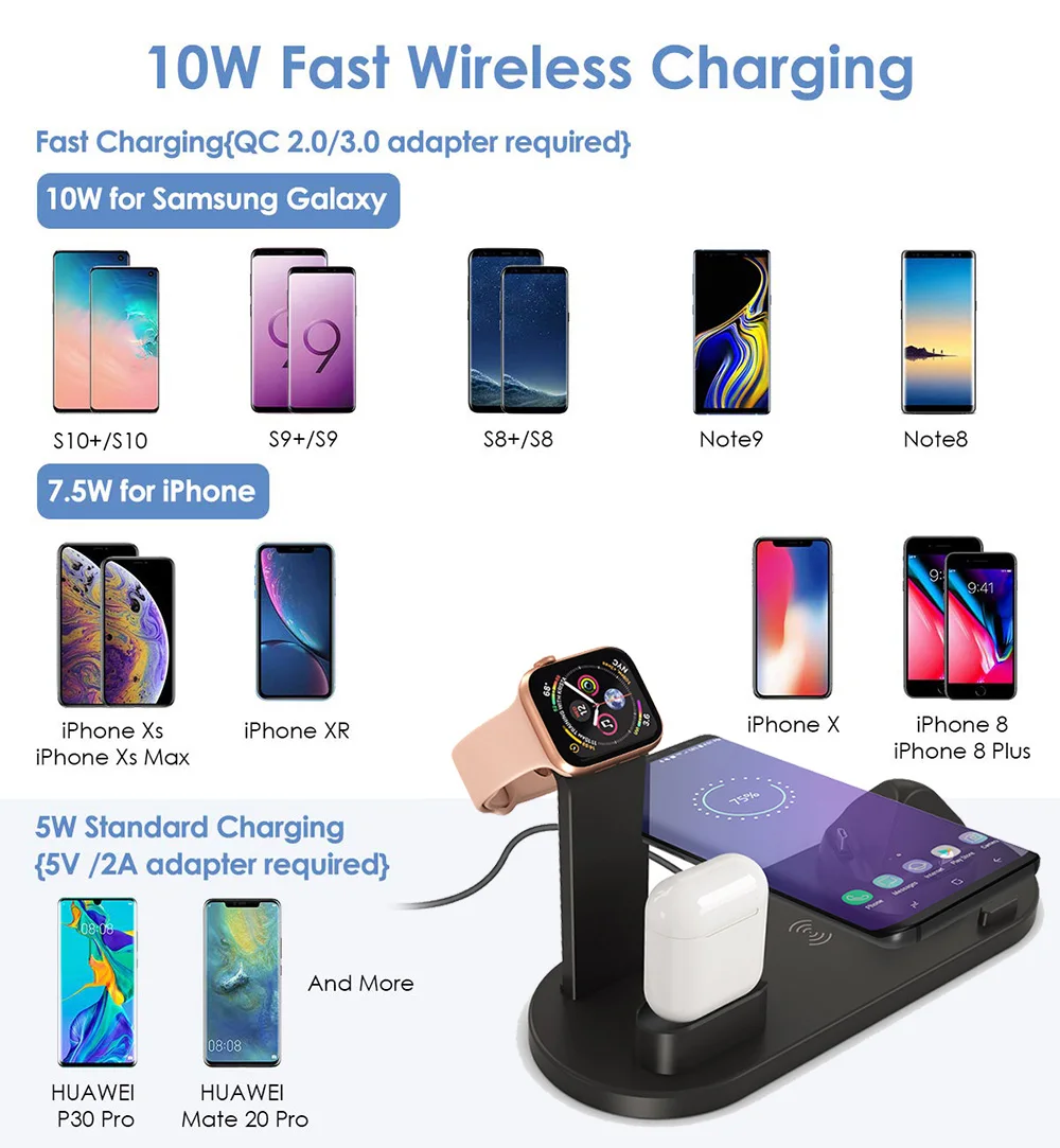 2. 3-in-1 wireless charger can charge for iPhone/for Apple Watch/for Airpods at the same time. Special consealed cable design provides you with a clean charging dock.