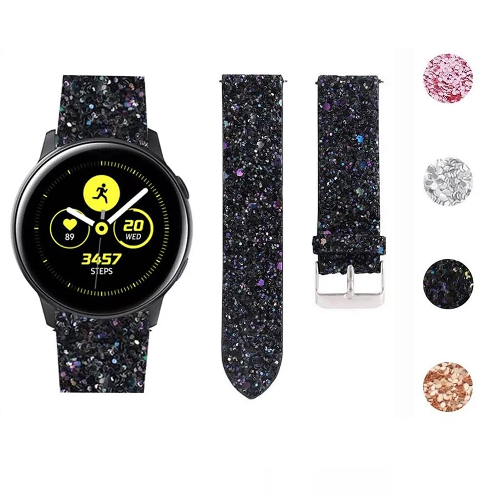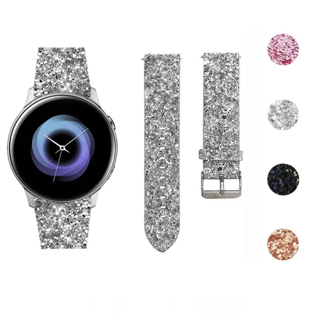 22mm 20mm Glitter Bling Leather Strap for Samsung Galaxy Watch Band 42mm/46mm/Active 2 1 40mm 44mm Bracelet Sequins Clock Belt