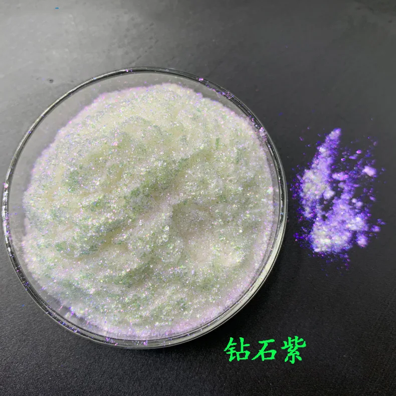 this product is fancy highlight diamond glitter powder. it is superfine, like ice cream. because it is fancy glitter, different light and background, its color is different as the following picture shows. A thin layer of glitter is daub on black background, the real color is appeared. the material is mica, it is used for manicure, make up, craft, pack& bag, decorations.... it is so flash and shiny, under sunshine, it is polychrome, a great eye-catching tool! it is packed by bag, weight is 20g per bag.